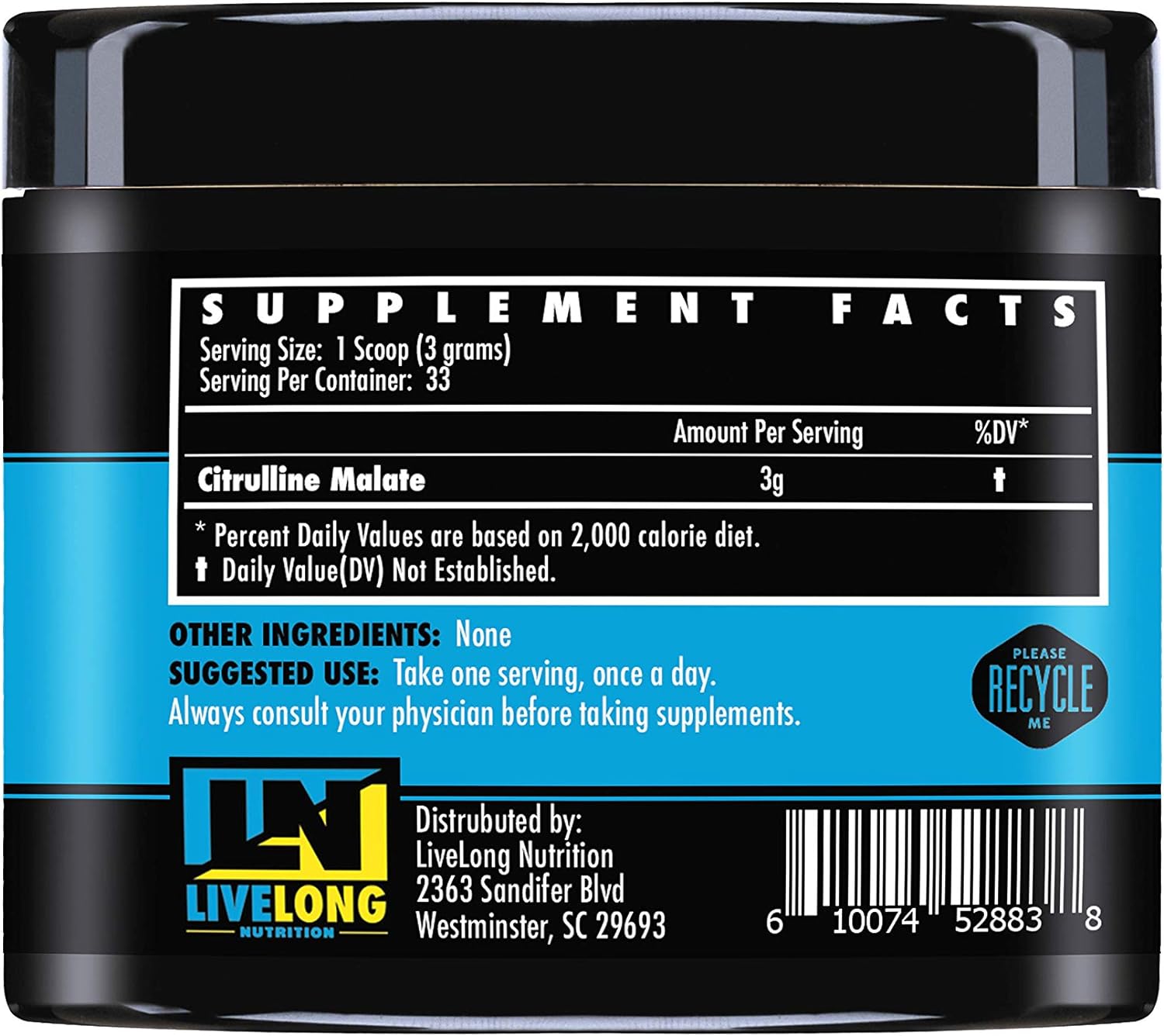 Citrulline malate increase intensity, increase indurance, reduce muscle fatigue. Powder 3.5oz, amount per serving 3g citrulline malate. Increase intensity. Increase endurance