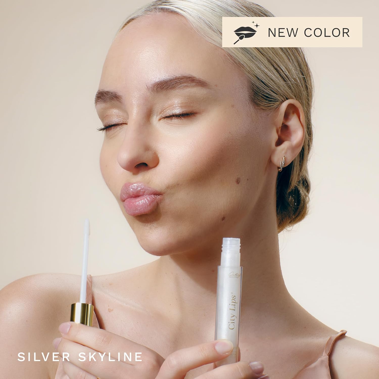 City Beauty City Lips Plumping Lip Gloss Silver Skyline - High-Shine Gloss for Fuller, Younger-Looking Lips | Hydrating & Smoothing Lip Treatment Hyaluronic Acid