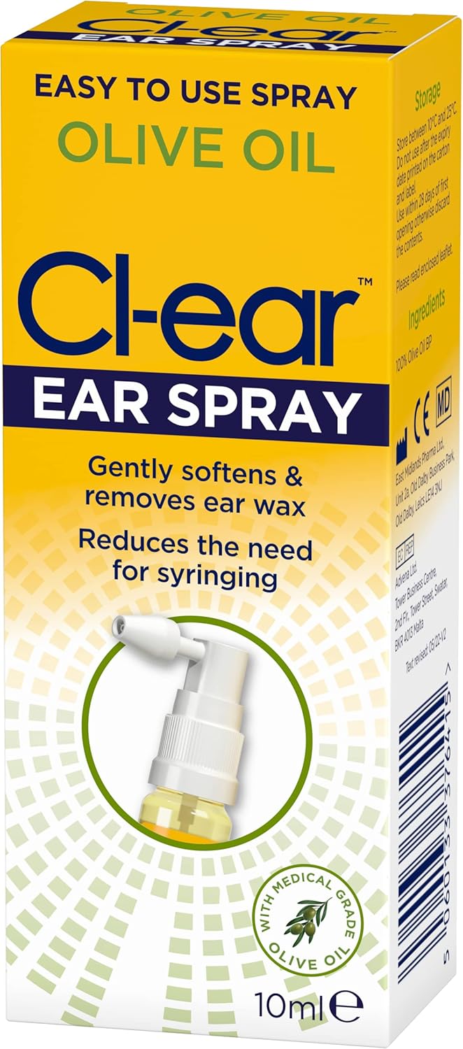 Cl-Ear Olive Oil Ear Spray - Natural Ear Wax Removal, Gently Softens & Prevents Ear Wax Build-Up, Removes Ear Wax, Suitable For Adults, Elderly And Children - 10Ml (1 Pack)