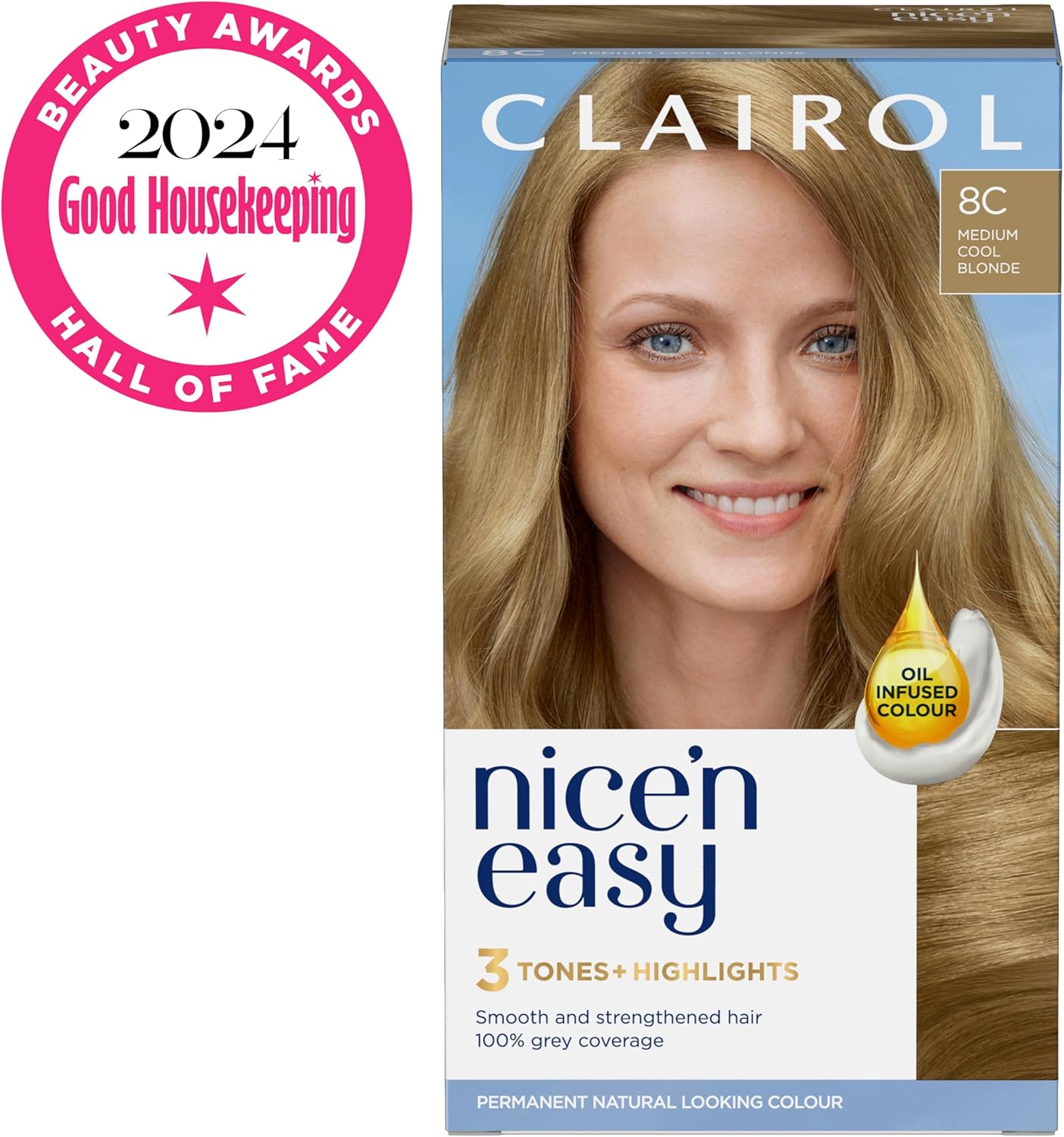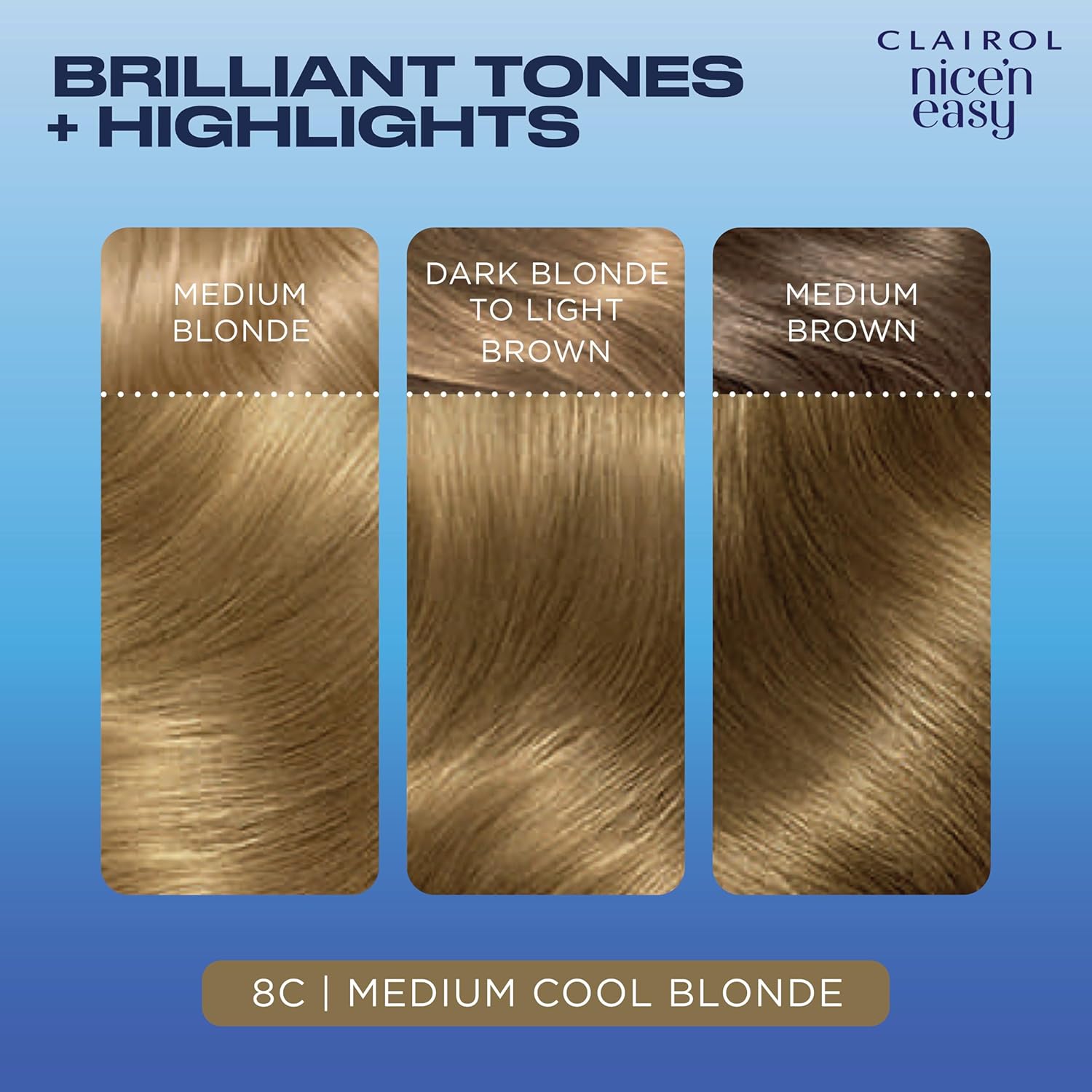 Clairol Nice'N Easy Crème, Natural Looking Oil Infused Permanent Hair Dye, 8C Medium Cool Blonde