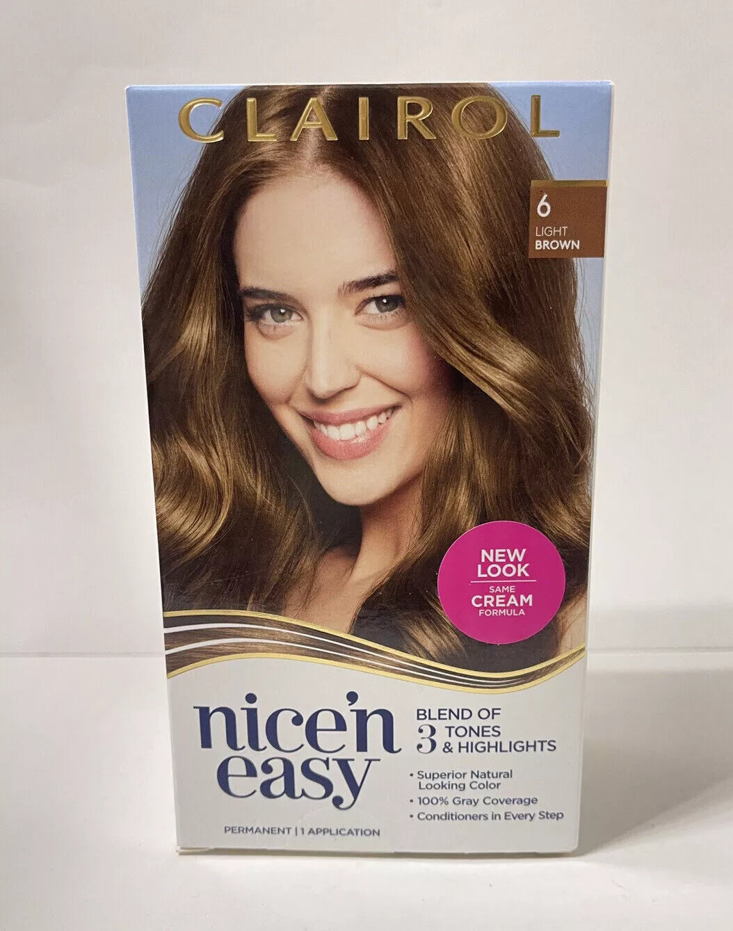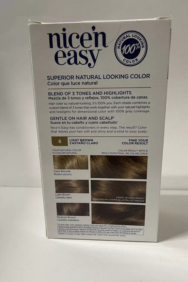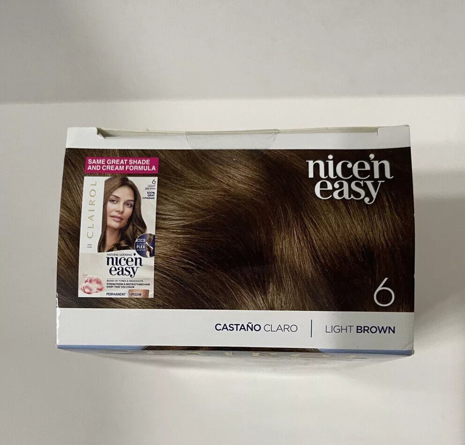 Clairol Nice'n Easy Permanent Hair Dye in the shade 6 Light Brown offers a natural-looking, radiant light brown hair color. It’s designed to provide long-lasting, vibrant color that covers 100% of grays while leaving hair soft and shiny.