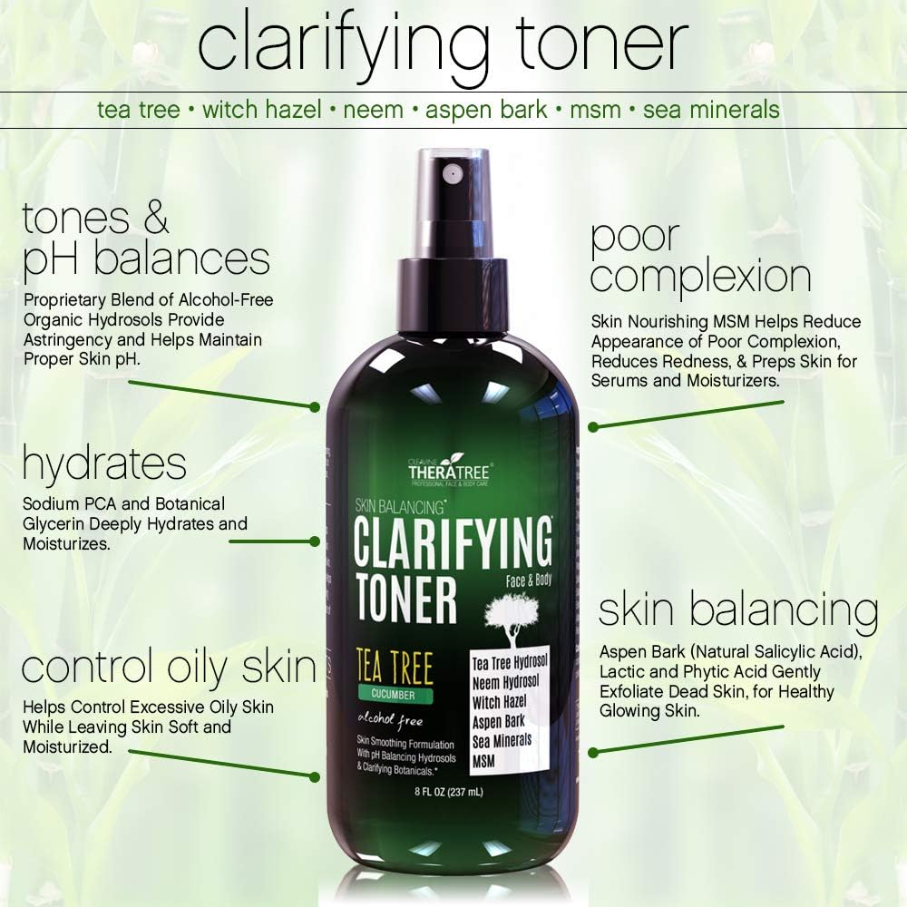 Clarifying Toner With Msm, Tea Tree & Neem Hydrosol, Complexion Control For Face & Body β Helps Reduce Appearance Of Pore Size, Controls Oil To Tone, Balance & Hydrate Skin - 8 Oz