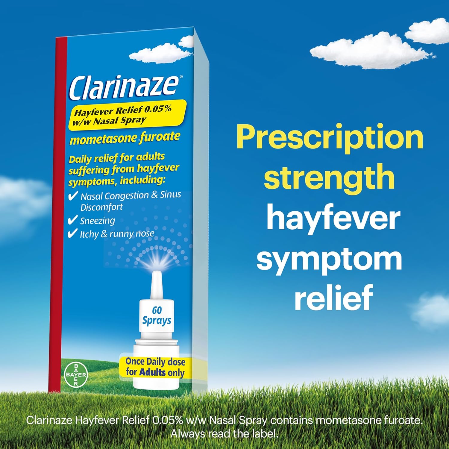 Clarinaze Hayfever Relief Nasal Spray, Prescription Strength, Effective Relief From Allergy Symptoms, Mometasone Furoate 0.05%, 60 Sprays