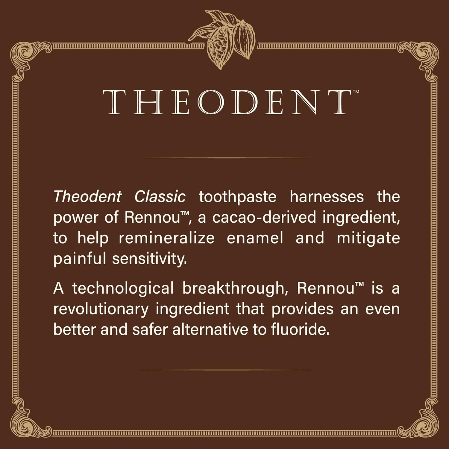 GENTLE & EFFECTIVE REMINERALIZING TOOTHPASTE: Theodent Classic toothpaste harnesses the power of Rennou. This powerful compound can increase enamel hardness through rapid and effective enamel remineralizationRELIEVES SENSITIVE TEETH: By promoting rapid remineralization, this all-natural toothpaste helps provide fast relief from the discomfort of enamel hypersensitivity and whitens surface enamelA FLUORIDE ALTERNATIVE: With growing concern around the harmful effects of fluoride, Theodent offers an even better alternative: Rennou. Theodent Classicās focus is safely strengthening and repairing tooth enamelTHE POWER OF NATURE: Rennou is the safe-to-swallow active ingredient in all Theodent products. Rennou contains theobromine, an amazing compound with many beneficial health properties that comes from the cacao plant, the source of chocolateTHEODENT IS A STEP ABOVE: Theodent has been clinically proven to remineralize surface enamel more effectively than other toothpastes on the market. Furthermore, as a company, Theodent strives to lead the industry in innovative enamel remineralization technologyClassic Fluoride-Free, Natural Toothpaste for Remineralization and Sensitivity Reduction, Whitening Crystal-Mint (3.4 Ounces, 96.4 Grams)