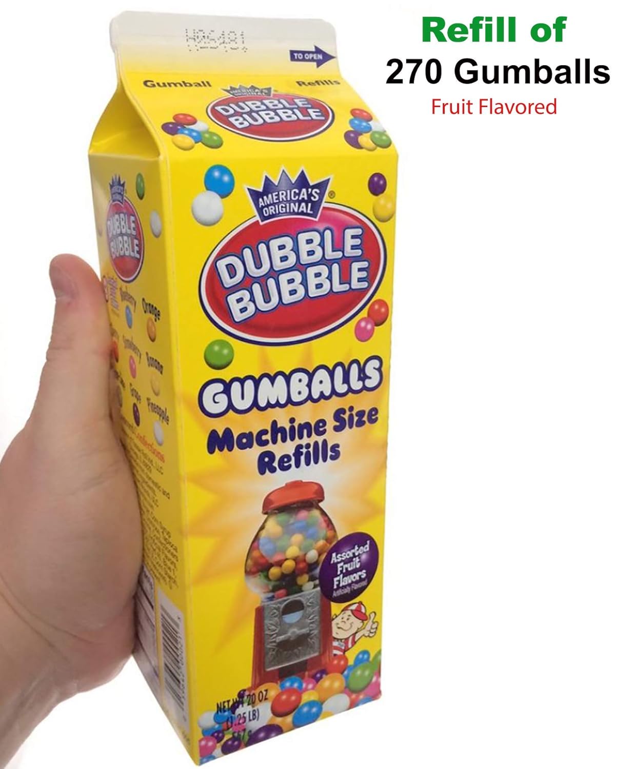 8 "Gumball Machine with Refill Carton Dubble Bubble Gumballs (270 pc) ? Fruit Flavored gum balls ? Coin operated Gum can be dispensed with or without coins. This classic gumball machine doubles as a coin bank to teach kids the value of saving money