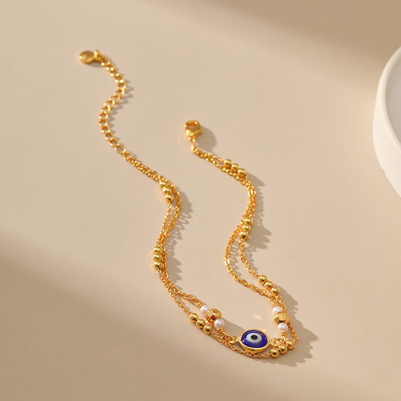 Classic Turkish Blue Eye Anklet β Multi-Layer Chain, 18K Gold Plated, Color-Preserving Foot Jewelry