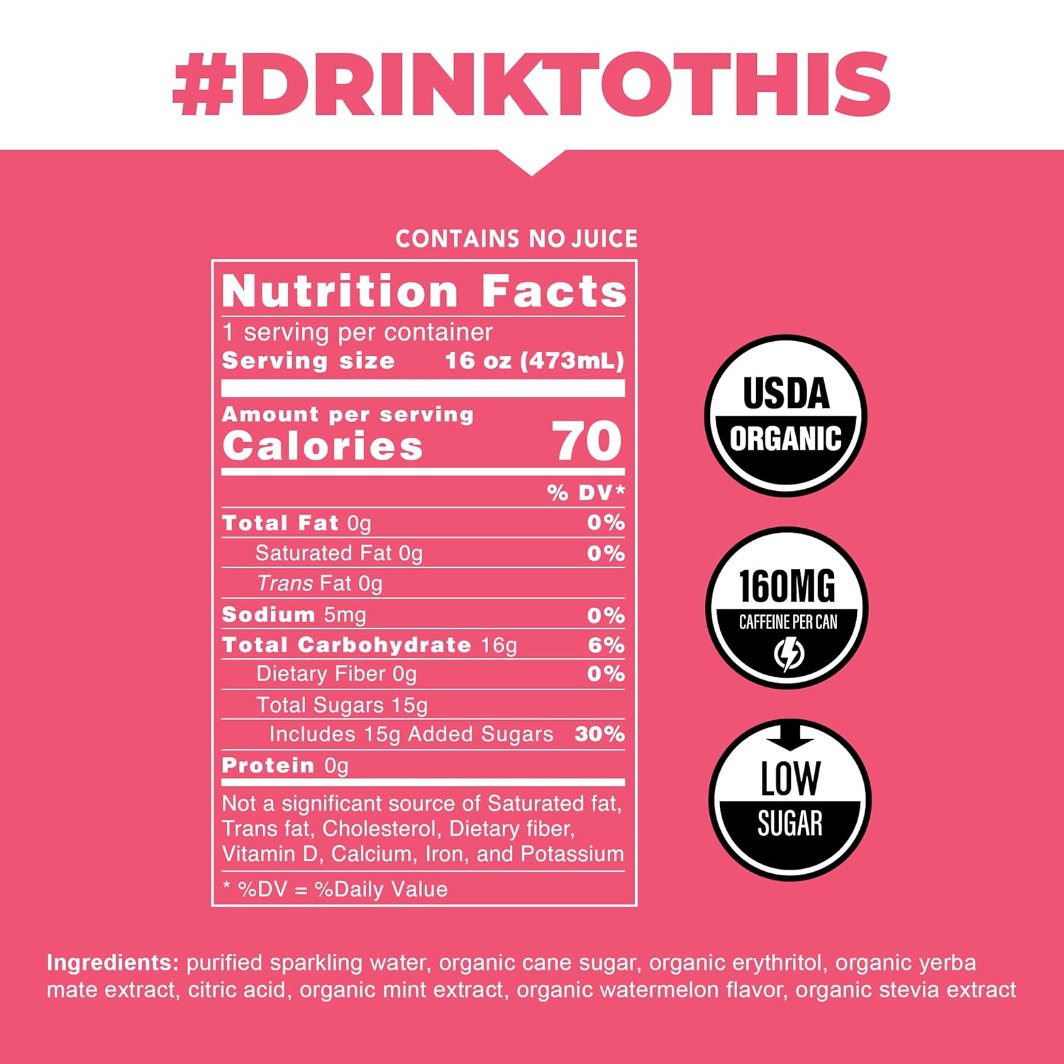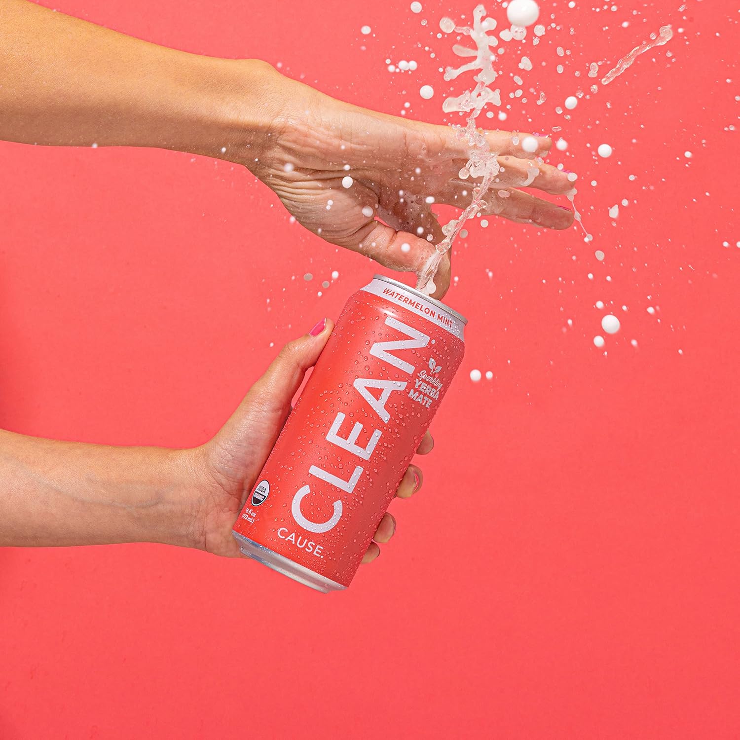 Clean Cause Low Calorie Watermelon Mint Sparkling Yerba Mate Tea, 160Mg Caffeine, Organic, Low Sugar, Healthy Alternative To Energy Drinks (16Oz Cans, 12-Pack Case)