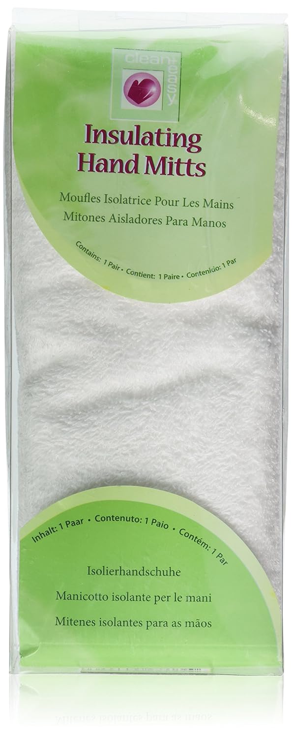 About this item Professional-grade Hand Mitts: Specially designed for the hands and ideal for paraffin wax bath and nail care procedures; works great in treating thickened palm and relieving muscle issues; for pre-and post-exercise sports recovery and blood circulation Retains Heat Effectively: Made of premium quality thick terry cloth to ensure maximum warm retention during a paraffin treatment; helps promote deeper penetration of hydrating oils and creams into the skin; increases the effect of the paraffin wax Sanitary and Easy To Use: Fully washable and easy to clean providing you fresh mitts to use every time; suitable for professional salon therapy and perfect to partner with paraffin dip; also convenient for the home spa as it is so easy to put on yourself Comfortable and Fits All Sizes: Includes (1) Pair of insulated hand mittens created with 100% very soft cotton and features a velcro closure to secure a snug and good fit; Pro-approved, Go-to Brand for Spa and Waxing Products: A leader in the professional spa industry, Clean+Easy offers a wide variety of efficient and affordable spa treatment tools and waxing products; 100% cruelty-free, never tested on animals › See more product details,Professional-grade Hand Mitts: Specially designed for the hands and ideal for paraffin wax bath and nail care procedures; works great in treating thickened palm and relieving muscle issues; for pre-and post-exercise sports recovery and blood circulation,Retains Heat Effectively: Made of premium quality thick terry cloth to ensure maximum warm retention during a paraffin treatment; helps promote deeper penetration of hydrating oils and creams into the skin; increases the effect of the paraffin wax,Sanitary and Easy To Use: Fully washable and easy to clean providing you fresh mitts to use every time; suitable for professional salon therapy and perfect to partner with paraffin dip; also convenient for the home spa as it is so easy to put on yourself,Comfortable and Fits All Sizes: Includes (1) Pair of insulated hand mittens created with 100% very soft cotton and features a velcro closure to secure a snug and good fit;,Pro-approved, Go-to Brand for Spa and Waxing Products: A leader in the professional spa industry, Clean+Easy offers a wide variety of efficient and affordable spa treatment tools and waxing products; 100% cruelty-free, never tested on animals