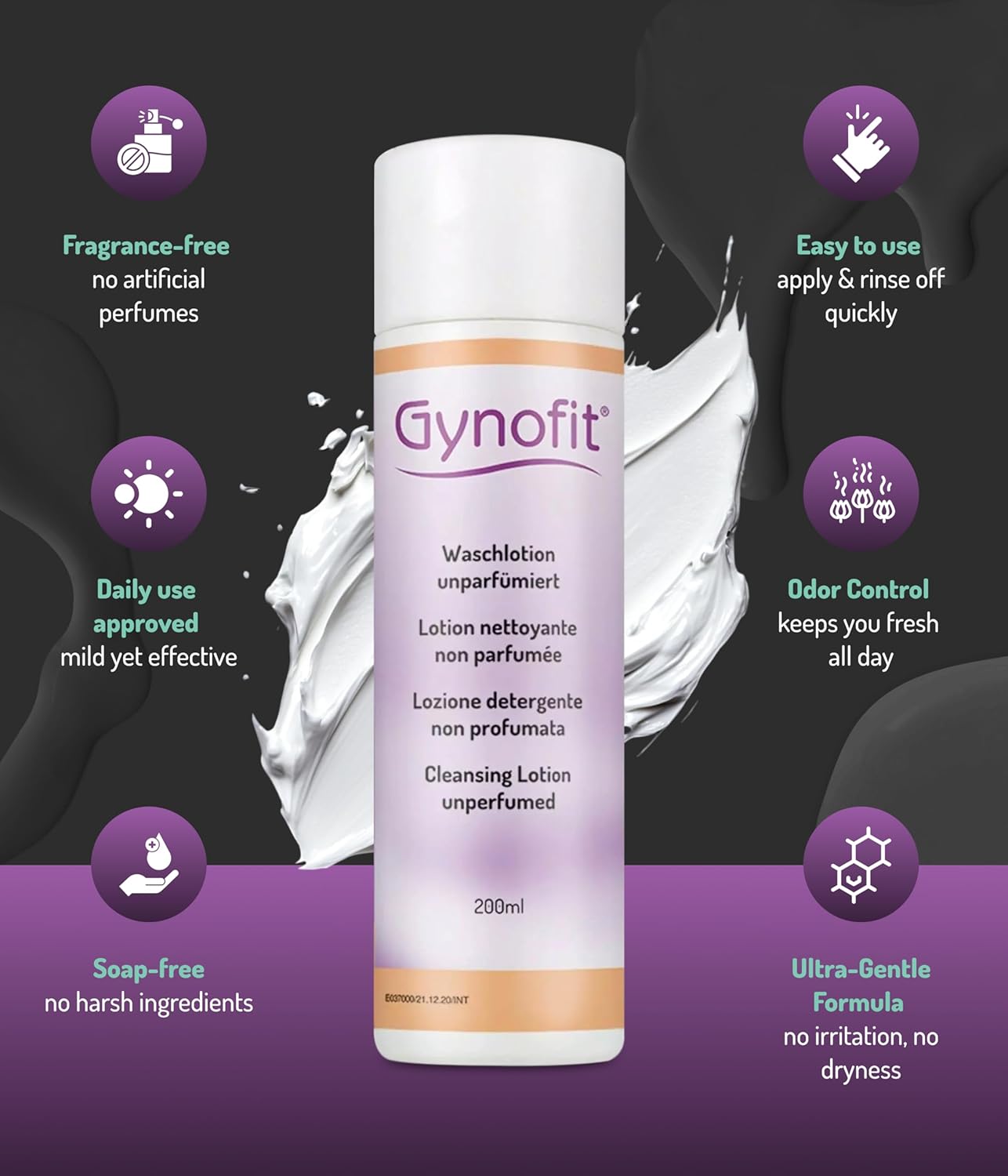 About this item 2-IN-1 WASH LOTION: Unlike alkaline soap, this extra-mild wash lotion has exactly the right pH value for your vaginal environment. This keeps the protective acid mantle intact, protects the vaginal skin from drying out, prevents irritation and keeps the vaginal climate in balance. Pure washing pleasure, pure care, pure strengthening through lactic acid! EXTRA-MILD-STRONG CLEANSING: Gynofit wash lotion naturally supports the protective function of the vaginal flora. It ensures a balanced pH value and leaves an all-round fresh feeling. For cleaning the external intimate area, available scented or unscented. CONTRIBUTES DAILY TO INTIMATE HEALTH: A lot can be done wrong when washing. Washing too often with alkaline soaps unbalances the vaginal area. For your intimate hygiene, therefore, preferably use a product that supports your vaginal flora in healthy functioning: Gynofit wash lotion contains valuable lactic acid, which does just that. KEY BENEFITS: Strengthens the naturally healthy vaginal environment and is dermatologically tested. Suitable for long-term, daily use and contains neither soap nor dyes and is also recommended by gynaecologists. EASY APPLICATION: Apply during showering, preferably by hand, and rinse off again. Done. And already the wash lotion gives you a safe feeling of cleanliness and freshness. See more product details,2-IN-1 WASH LOTION: Unlike alkaline soap, this extra-mild wash lotion has exactly the right pH value for your vaginal environment. This keeps the protective acid mantle intact, protects the vaginal skin from drying out, prevents irritation and keeps the vaginal climate in balance. Pure washing pleasure, pure care, pure strengthening through lactic acid!,EXTRA-MILD-STRONG CLEANSING: Gynofit wash lotion naturally supports the protective function of the vaginal flora. It ensures a balanced pH value and leaves an all-round fresh feeling. For cleaning the external intimate area, available scented or unscented,CONTRIBUTES DAILY TO INTIMATE HEALTH: A lot can be done wrong when washing. Washing too often with alkaline soaps unbalances the vaginal area. For your intimate hygiene, therefore, preferably use a product that supports your vaginal flora in healthy functioning: Gynofit wash lotion contains valuable lactic acid, which does just that,KEY BENEFITS: Strengthens the naturally healthy vaginal environment and is dermatologically tested. Suitable for long-term, daily use and contains neither soap nor dyes and is also recommended by gynaecologists,EASY APPLICATION: Apply during showering, preferably by hand, and rinse off again. Done. And already the wash lotion gives you a safe feeling of cleanliness and freshness