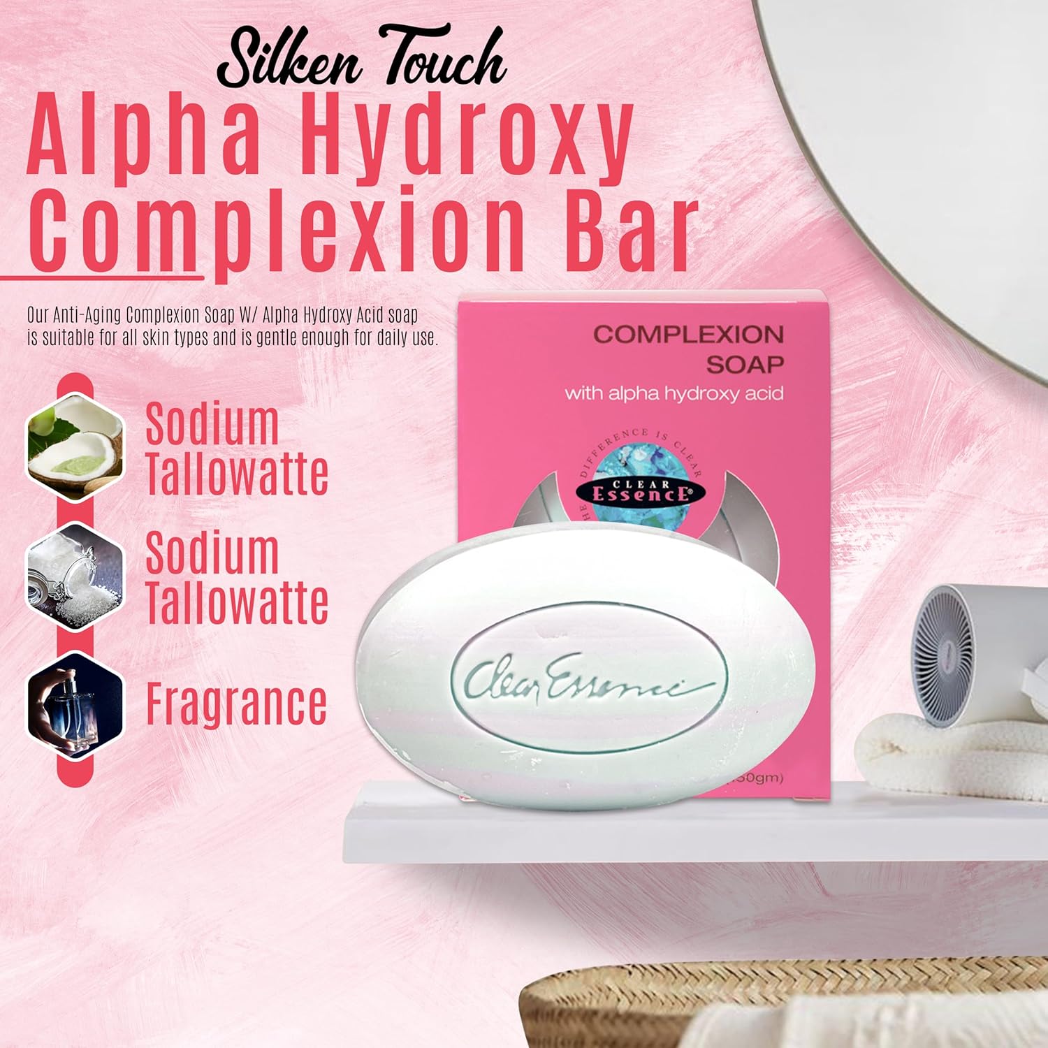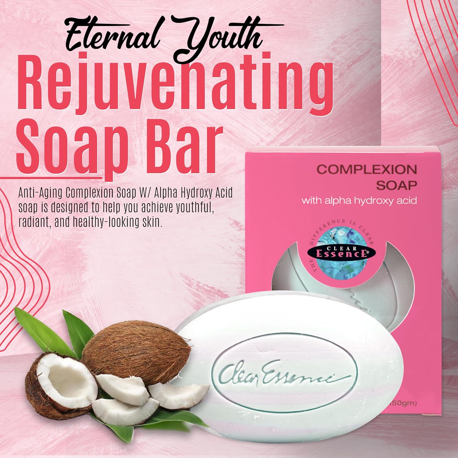 Clear Essence Anti-Aging Complexion Soap W/Alpha Hydroxy Acid - Cleansing And Exfoliating Soap Bar - Anti Aging And Acne Bar - Dermatologist Tested - All Skin Types (5 Oz.)