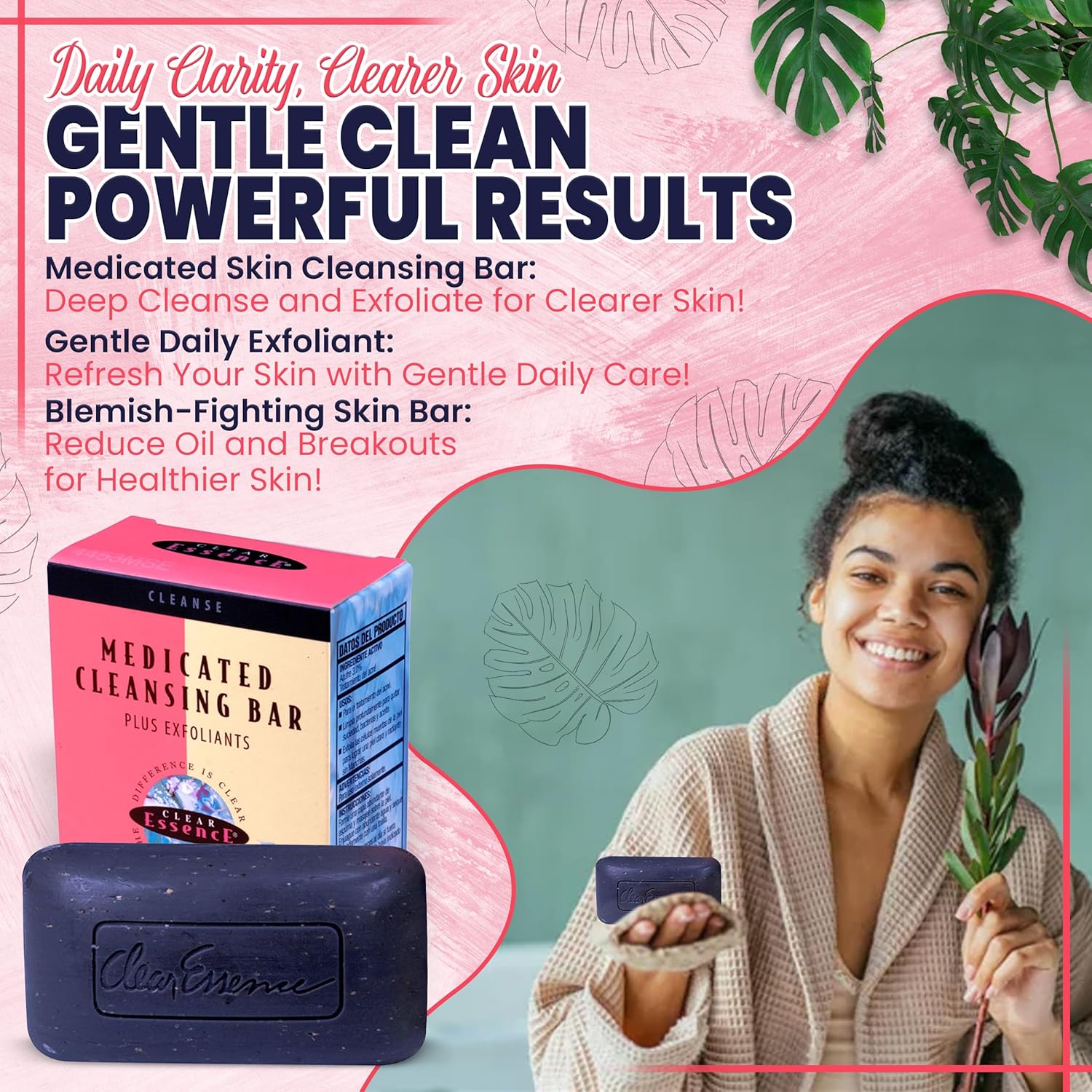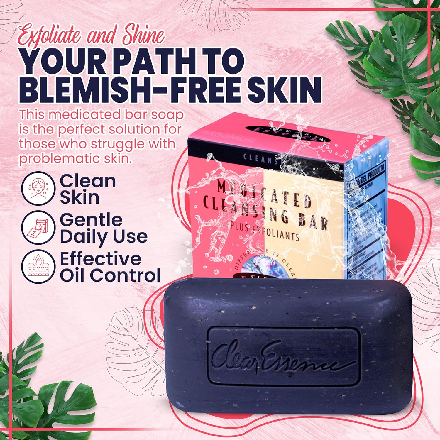 Clear Essence Platinum Extra Strength Medicated Cleansing Bar Plus Exfoliant - 4.7 Oz | Face And Body Soap - Complexion Soap - Washes Away Dirt, Oil, And Acne - Soap For Men And Women