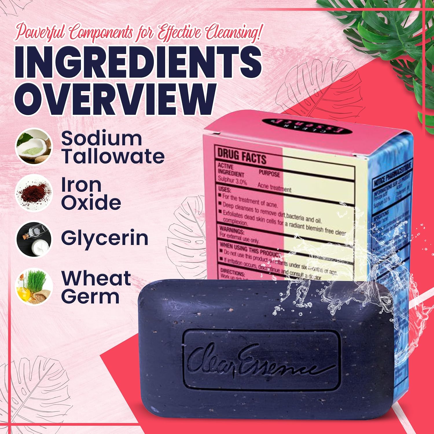 : By reducing oiliness & fighting bacteria, this cleaning bar soap can help keep skin blemish-free, slick-free. The sulfur acts as a detox for pores clogged with oily grime & other impurities. Clear Essence Platinum Line Extra Line Medicated Cleansing Bar gently removes dirt, and oil, prevents pimples and impurities, unclogs pores, and promotes clearer healthier-looking skin