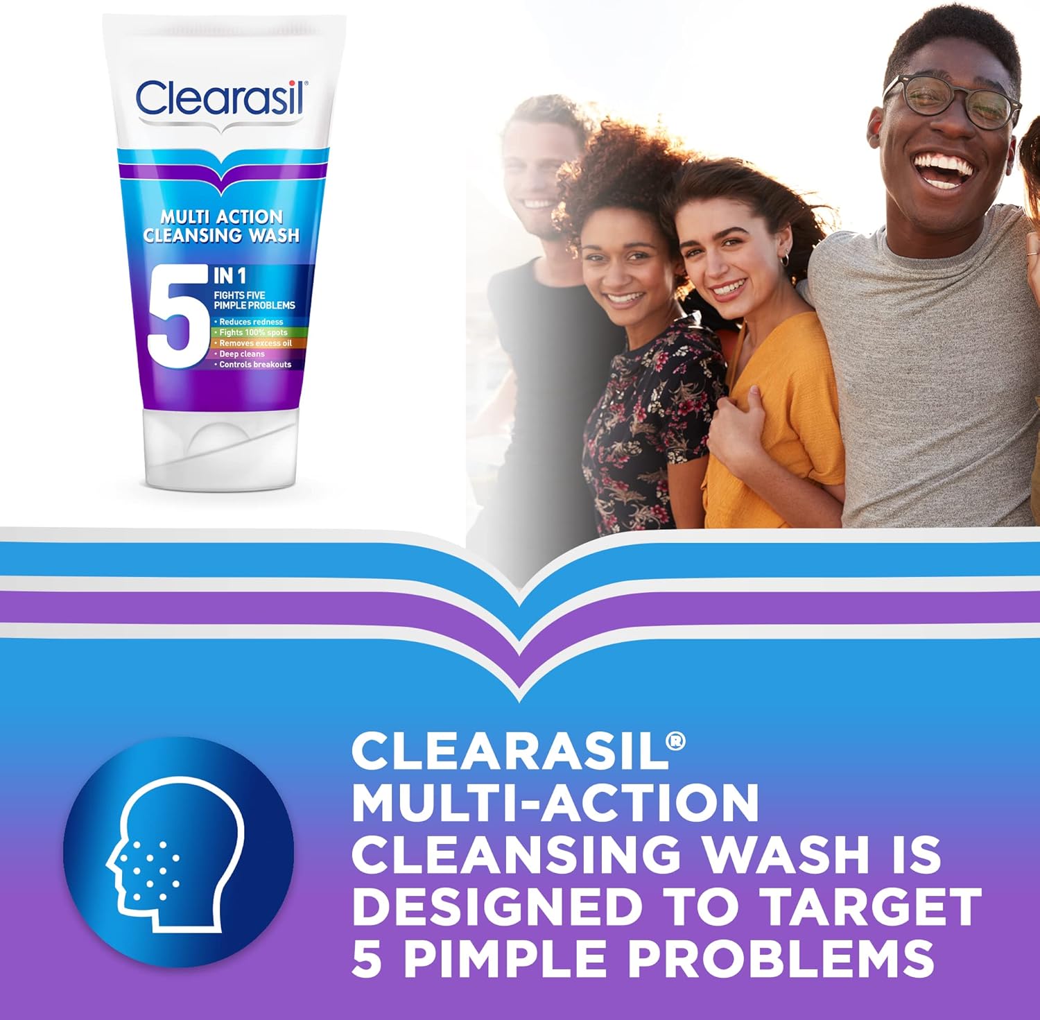 Give Breakout Prone Skin The Help It Needs With Clearasil Multi Action Cleansing Pads, Specially Designed To Tackle All 5 Breakout Problems: 1. Deep Cleans. Unclogs Pores 3. Removes Excess Oil. 4. Helps Prevent Breakouts. 5. Helps Calm Skin Clearasil Multi Action 5 In 1 Starts Working Instantly By Opening Blocked Pores And Cleansing To Help Prevent Breakouts And Reduce Redness. It Dermatologically Tested And Scientifically Formulated With Maximum Strength Ingredients So You Can Have Visibly Clearer Skin Quickly. Use Daily In The Morning And Evening For Visibly Clearer Skin. Simply Wet Face, Distribute Product Into Hands, Massage Gently Onto Face Avoiding Eyes And Rinse,Clearasil Ultra 5 in 1 Face Wash Pack of 3 x 150 ml,Product type: SKIN CLEANING AGENT,Brand: Clearasil,Size: 150 ml Pack of 3