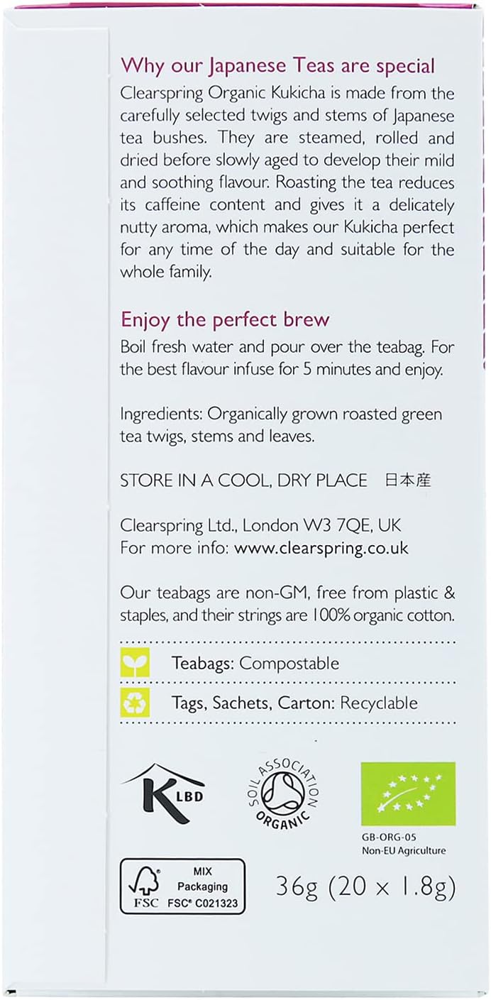 Clearspring Organic Japanese Kukicha - 20 Tea Sachets