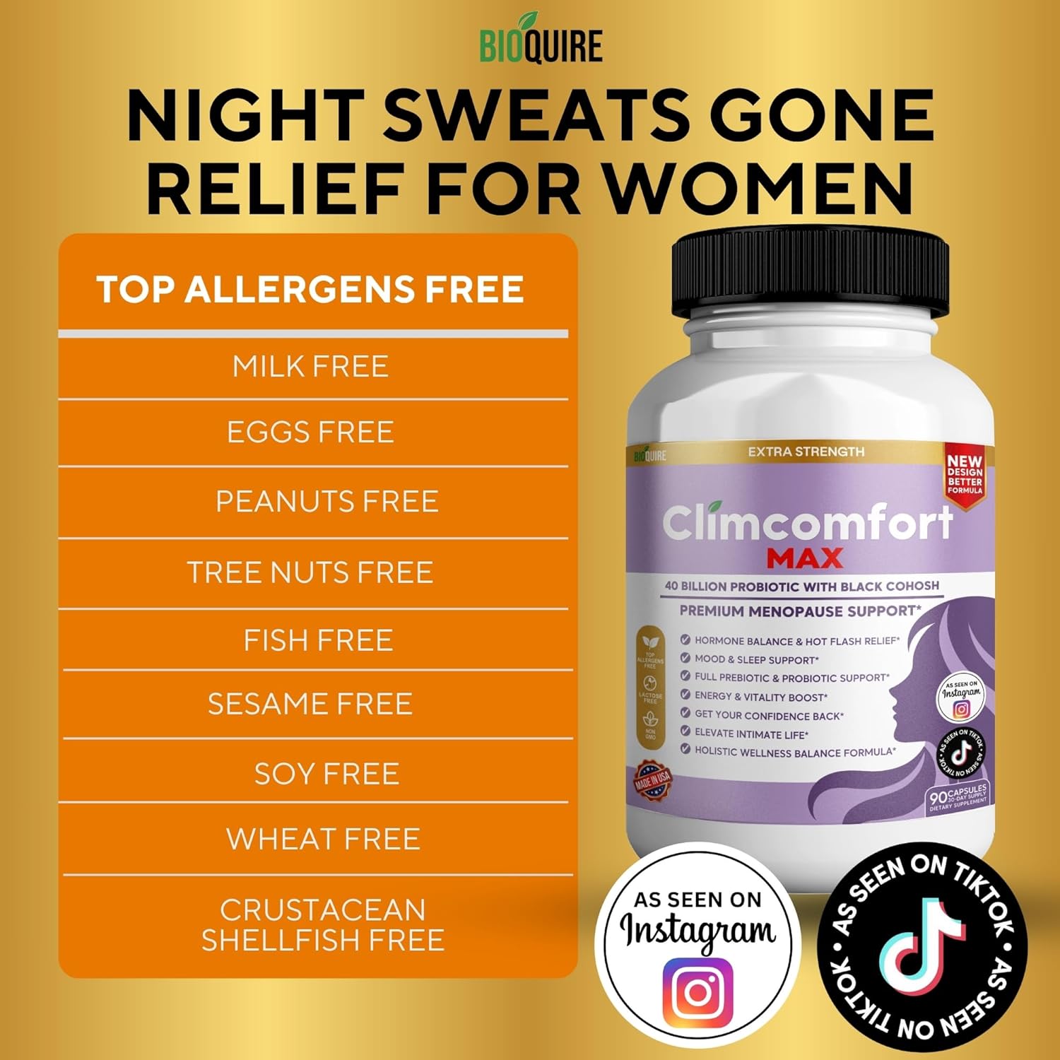 Climcomfort Max Menopause Support, 40 Billion Probiotic With Black Cohosh, 90 Capsules, Hormone Balance And Hot Flash Relief (2)