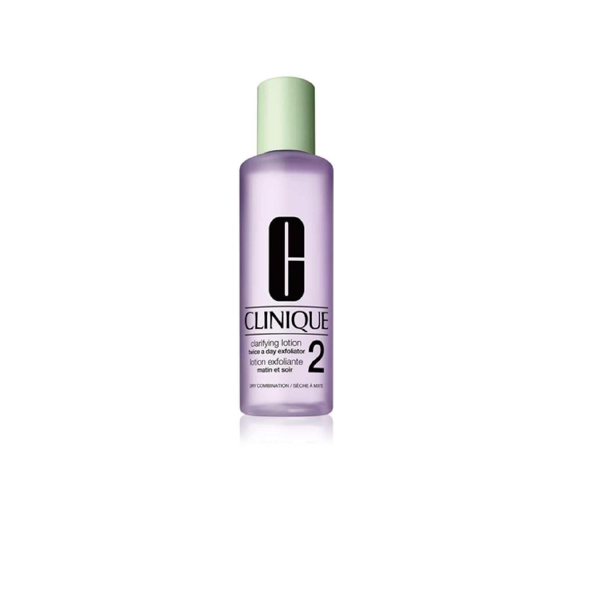 Complexion Type:Combination, Dry&Effects:Cleansing&Active Ingredients:Salicylic Acid, Witch-Hazel&Does Not Contain:Microplastic Free Remove Dead Skin Cells From Your Skin And Give It A Healthy Glow. The Clinique Clarifying 2 Toner For Dry To Very Dry Skin Gently Removes Dry Flakes, Dirt And Excess Oil From Your Skin, Leaving It Perfectly Clean, Soft, Moisturized And Glowing. Characteristics: Removes Impurities And Dead Skin Cells Eliminates Excess Oil Helps Keep Pores Clean And Clear Moisturizes And Softens The Skin Refreshes The Skin Instantly Prepares The Skin Perfectly For Moisturizing Products The Skin Is Cleared Of Dry Flakes For Dry And Mixed Skin Ingredients: Free From Phthalates Fragrance-Free How To Apply: Use A Cotton Pad To Gently Cleanse The Skin On Your Face And Neck With The Clinique Clarifying 2 Toner Every Morning And Evening. Avoid The Eye Area And Lips. For Best Results, Continue By Using The Moisturizing Emulsion Or Moisturizing Gel From Clinique Dramatically Different About The Brand:Class Clinique Skin Care And Makeup With Effective, Safe And Clinically Tested Formulas Developed By Dermatologists. The American Brand Clinique Avoids Using Allergens And Irritants In Their Products In Order To Prevent Any Possible Damage To Your Skin. This Effort Results In Top-Quality, Hypoallergenic Skin Care And Makeup For Happier Skin. Clinique Was Founded In 1968 When The First Lines Of Their Skin Care And Body Care Came Out. From The Very Start, The Brand Has Made Sure To Combine Active Ingredients According To The Latest Scientific Research For Maximum Effect Without Irritation. Clinique Cosmetic Products Are Free Of Fragrance And Phthalates, Plus They’Re Diligently Tested For Allergens, Which Makes Them Perfect Even For The Most Sensitive Skin. Try These Products Whose Formulas Are Constantly Evaluated In Collaboration With Scientists, Researchers, Physicians And Certified Dermatologists To Ensure Maximum Results Without Irritation. Apart From Skin Care, Body Care And Makeup, You Might Also Like Clinique Fragrances And You’Ll Be Sure To Find An Ideal Clinique Perfume For Yourself Or Your Loved One. Women Adore Clinique Happy Eau De Parfum Full Of Floral And Fruity Notes, While Men Appreciate Clinique Happy For Men Eau De Toilette With Citrus Aroma Ingredients:Ingredients Clinique 3 Steps Clarifying Lotion 2 Complete Ingredients List Water/Aqua/Eau, Alcohol Denat., Glycerin, Hamamelis Virginiana (Witch Hazel), Menthol, Acetyl Glucosamine, Trehalose, Sodium Hyaluronate, Butylene Glycol, Sodium Bicarbonate, Red 6 (Ci 15850), Red 33 (Ci 17200), Ext. Violet 2 (Ci 60730). The Manufacturer Is Responsible For The Ingredients Of The Product. We Recommend Checking The List Of Product Ingredients Directly On Its Packaging Due To Potential Changes