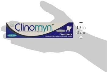 About this item The British Dental Health Foundation recognises that Clinomyn is a useful aid in dental health care Restores the natural colour of teeth Specially formulated for the removal of nicotine stains Contains Fluoride Freshens breath and is suitable for everyday use › See more product details,The British Dental Health Foundation recognises that Clinomyn is a useful aid in dental health care,Restores the natural colour of teeth,Specially formulated for the removal of nicotine stains,Contains Fluoride,Freshens breath and is suitable for everyday use
