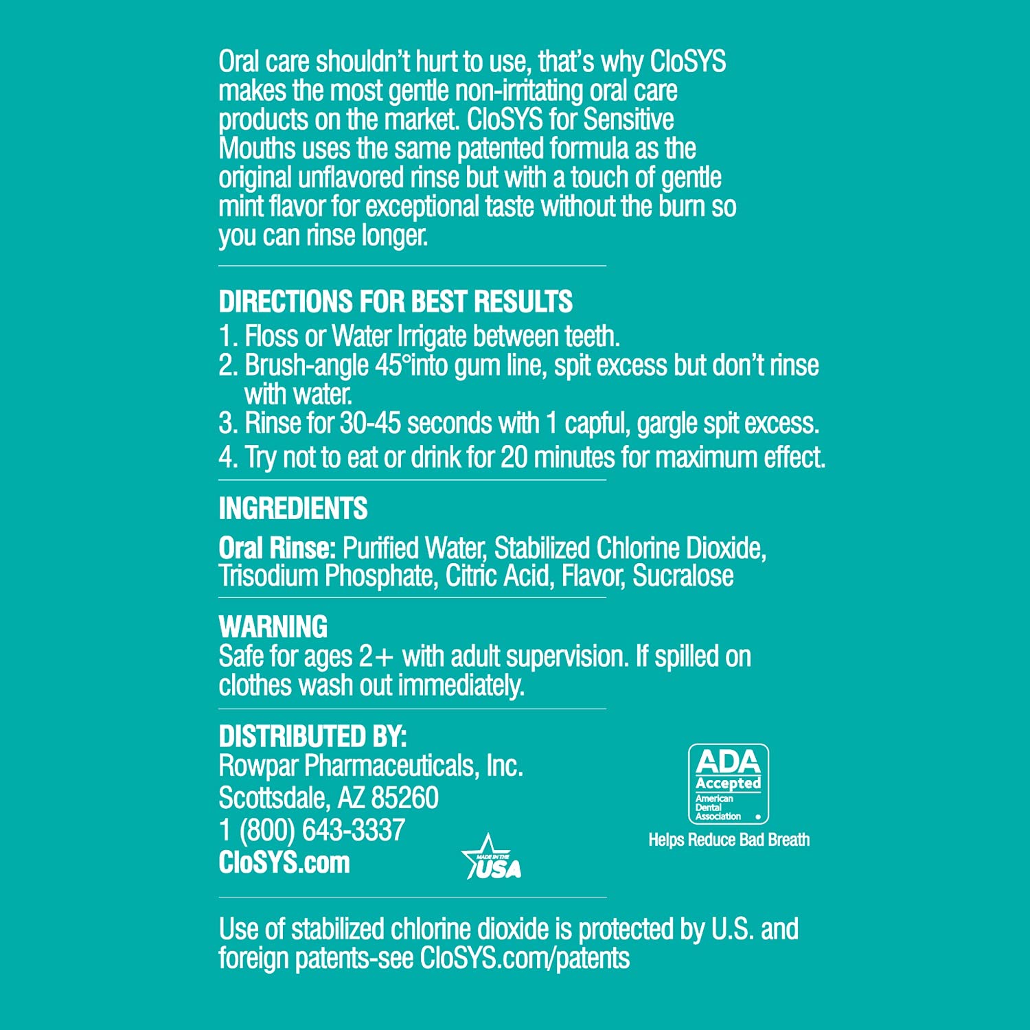 Why Does Most Mouthwash Burn And Irritate It DoesnâT Have To Hurt To Be Effective. With Closys Mouthwashes You Can Protect Your Mouth From Harmful Bad Breath Germs And Freshen Your Breath Without The Painful Burn. Closys Is One Of The First Mouthwashes To Receive The American Dental Association Seal For Reducing Bad Breath. This Gentle But Powerful Mouthwash Is Perfect For All Ages Because Its Patented Formula Is Ph Balanced And So Gentle YouâLl Actually Use It Longer For Better Results. A 30-Second Rinse In The Morning And Evening After Each Brushing Is Easy, And All It Takes To Get Great Results. Closys Sensitive Mouthwash Comes Mildly Flavored With A Touch Of Gentle Mint. Nothing Overpowering Or Painful. Just A Clean, Fresh, Soothing Mouthwash YouâLl Actually Use, Because Closys Is The Gentlest Oral Care Ever
