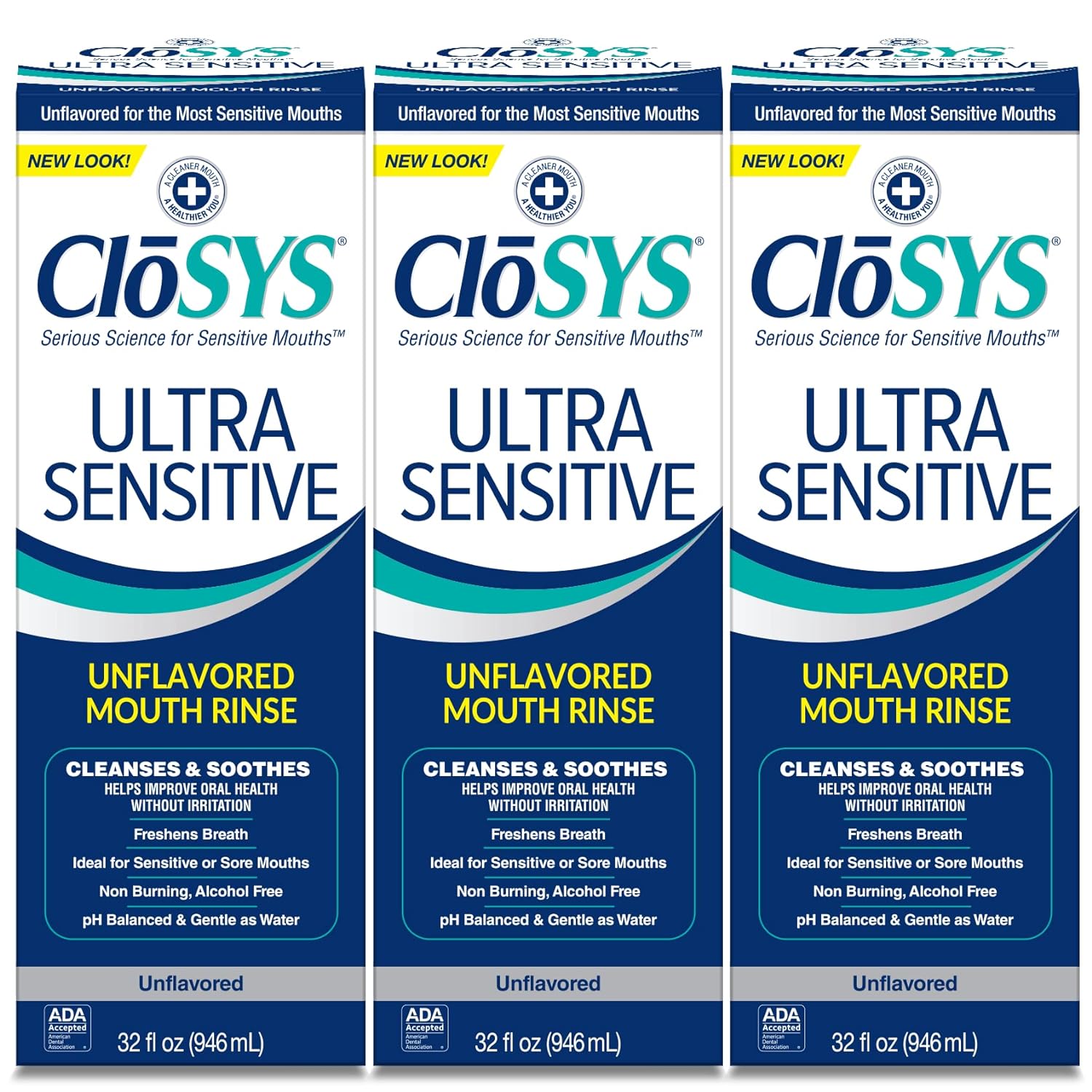 Closys Ultra Sensitive Mouthwash, Unflavored Alcohol Free, Dye Free, Ph Balanced, Helps Soothe Entire Mouth - 32 Oz (Pack Of 3)