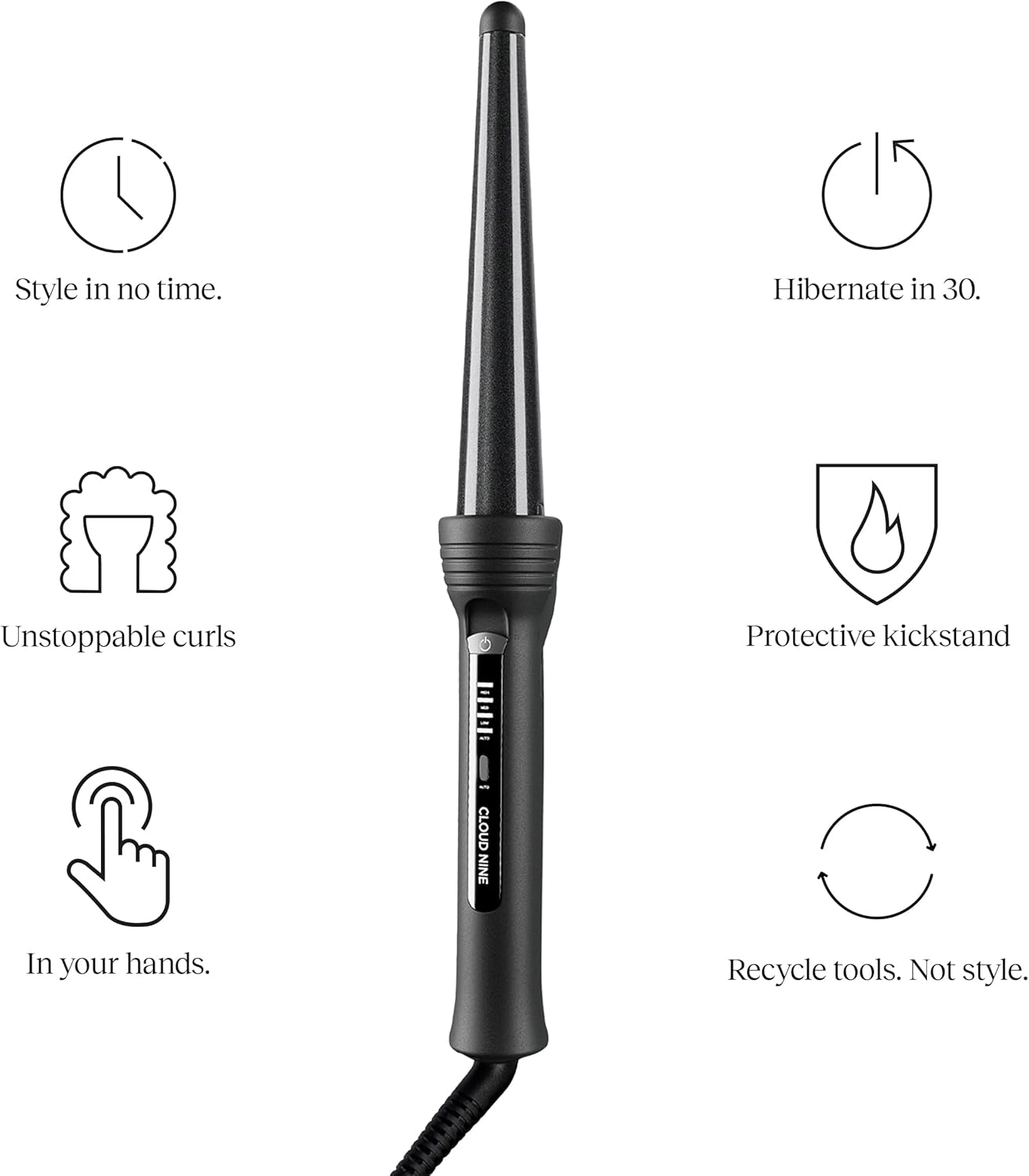 Cloud Nine The Waving Wand | Variable Temperature Control Mineral Infused Ceramic Barrel | 360° Swivel Cord