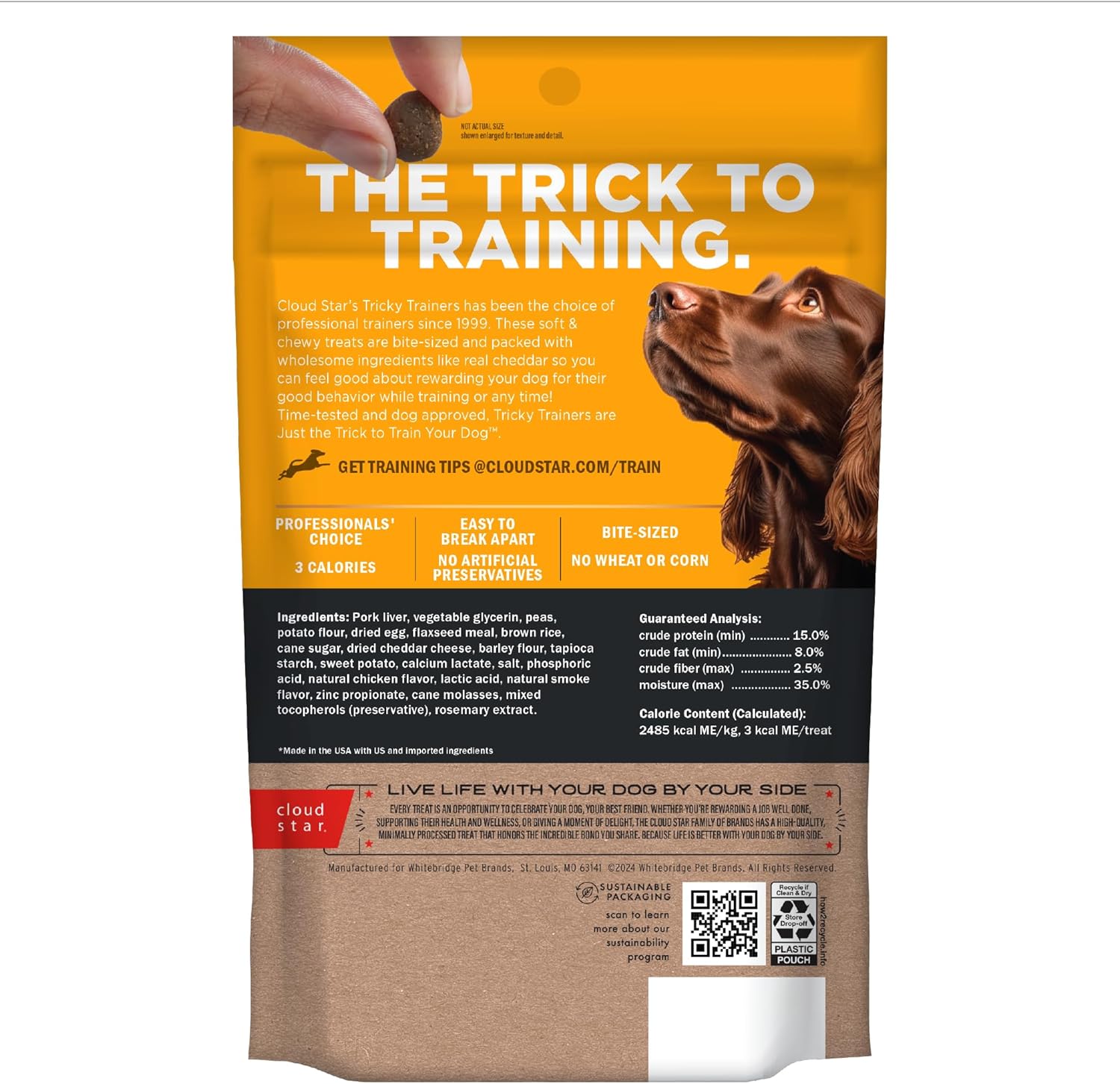 Cloud Star Tricky Trainers Has Been The Choice Of Professional Trainers Since 1999, With Irresistible Flavor To Keep Dogs’ Attention, Low Calories, And Deliciously Soft And Chewy Texture. Each Bite-Size Treat Is Packed With Wholesome Ingredients Like Natural Cheddar Cheese, And No Corn, Wheat, Artificial Colors Or Flavors, So You Can Feel Good About Rewarding Their Good Behavior - While Training Or Any Time!