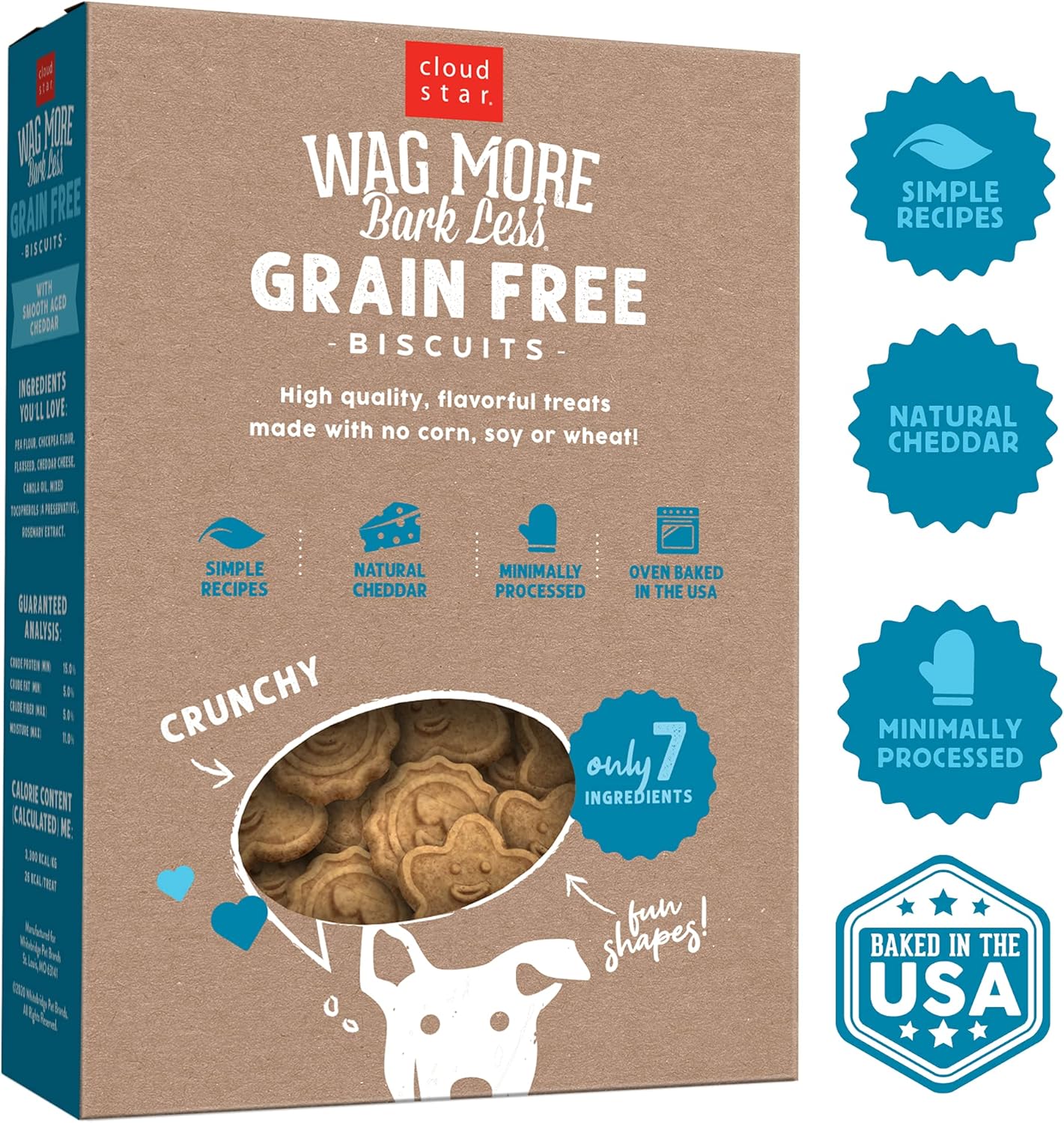What Makes Dogs Wag More Bark Less Crunchy Biscuits, Of Course! Cloud Star'S Wag More Bark Less Biscuits With Natural Smooth Aged Cheddar Offer Guilt-Free Indulgence For Your Best Friend. Made Just How You'D Make It, Our Minimally Processed Biscuits Are Oven-Baked In Small Batches In The Usa Using Natural Cheddar Cheese And High-Quality Ingredients. They Are Also Free Of Grain, Gluten, Corn, Wheat, Soy, Animal By-Products, And Artificial Flavors And Colors. Give Your Dog What Gets His Tail Moving!
