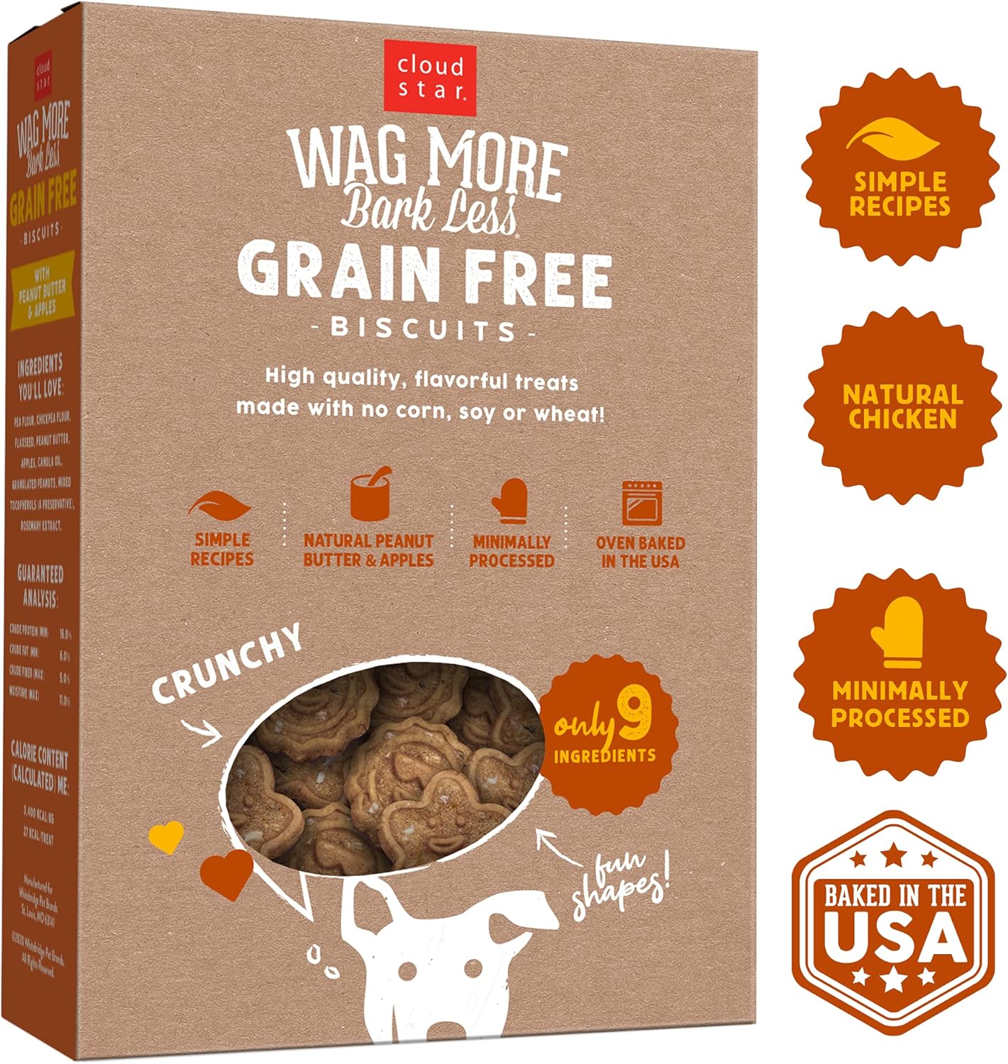 Cloud Star Wag More Bark Less Crunchy Grain Free Dog Treats, Peanut Butter & Apples, 14 Oz. Box
