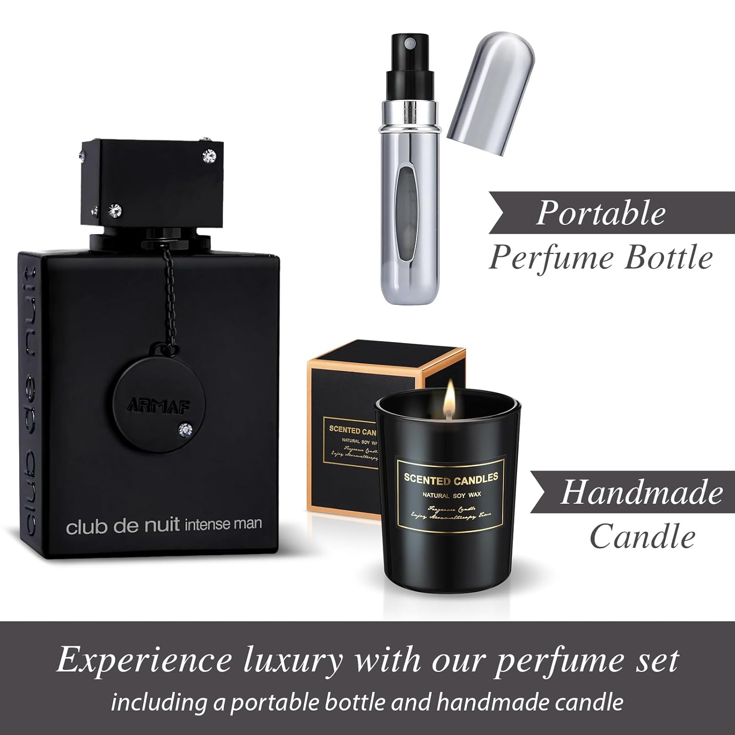 Club De Nuit Intense Perfume For Men 3.4 Oz Edt Spray Eau De Toilette - Gift Set Pack With Scented Soy Candle And Empty Travel Perfume Atomizer