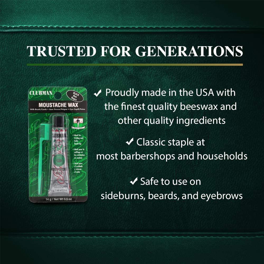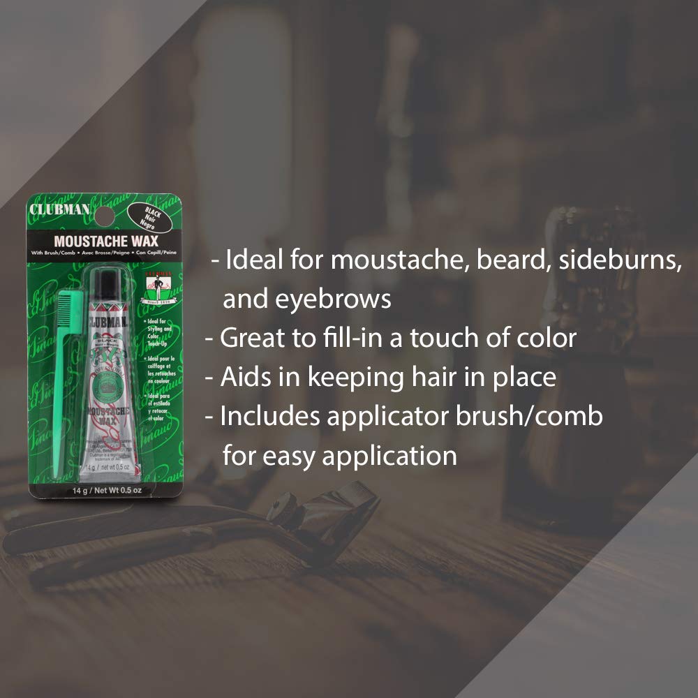 HANDY, PERFECTLY SIZED FOR TRAVEL: Coming in a handy 0.5-ounce tube for hassle-free and no-mess styling that’s suitable for everyday use, the Clubman Moustache Wax Hang Pack - Black is made to go everywhere you do, so your mustache will look good even when you’re operating at travel size. It fits in your bag to provide quality shiny styling products when you’re on the go which makes it a great bargain buy that goes a long way!