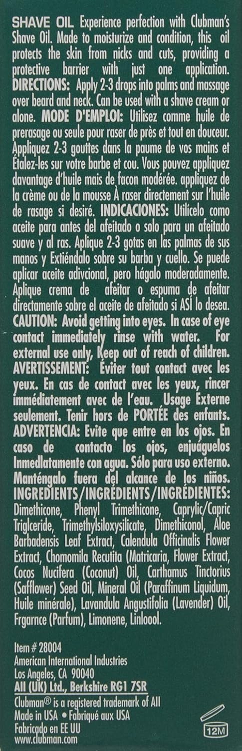 Clubman Shave Oil β Pre-Shave Oil For Men, Moisturizes & Improves Razor Glide, 1 Fl Oz