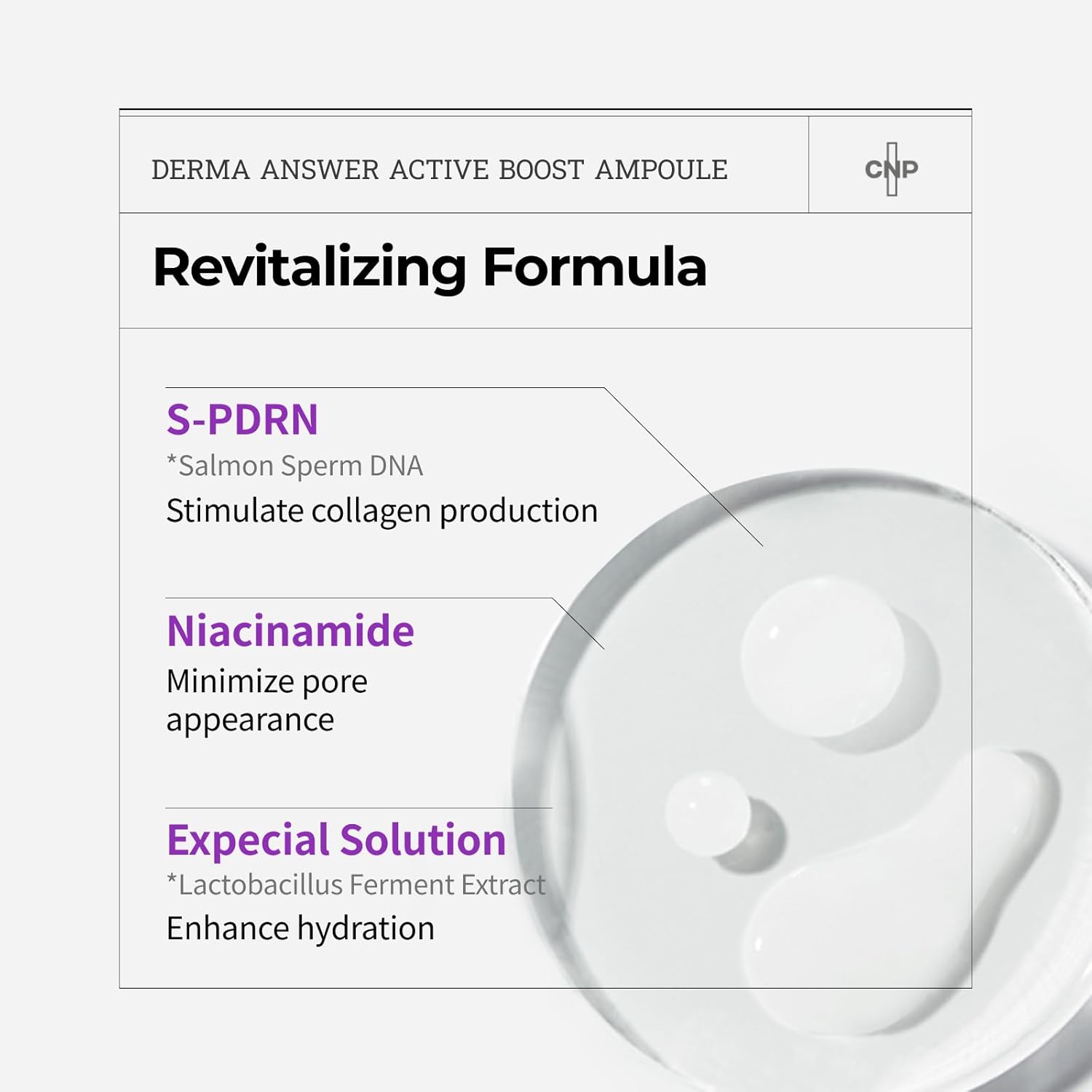 Cnp Derma Answer Active Boost Ampule (15Ml / 0.5 Fl. Oz) - Pdrn & Collagen Serum For Face, Smoothing Fine Lines, Rejuvenating & Firming Skin, Anti Wrinkle Booster, Korean Skin Care