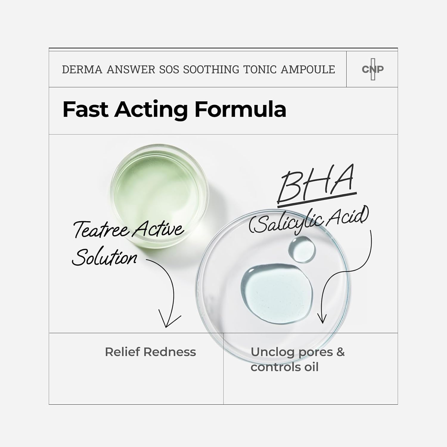 Cnp Derma+Answer S.O.S Soothing Tonic Ampule (50Ml / 1.01 Fl. Oz) - Bha (Salicylic Acid) Soothing Serum For Redness, Gentle Exfoliation For Dry And Sensitive Skin, Clinically Tested, Korean Skin Care