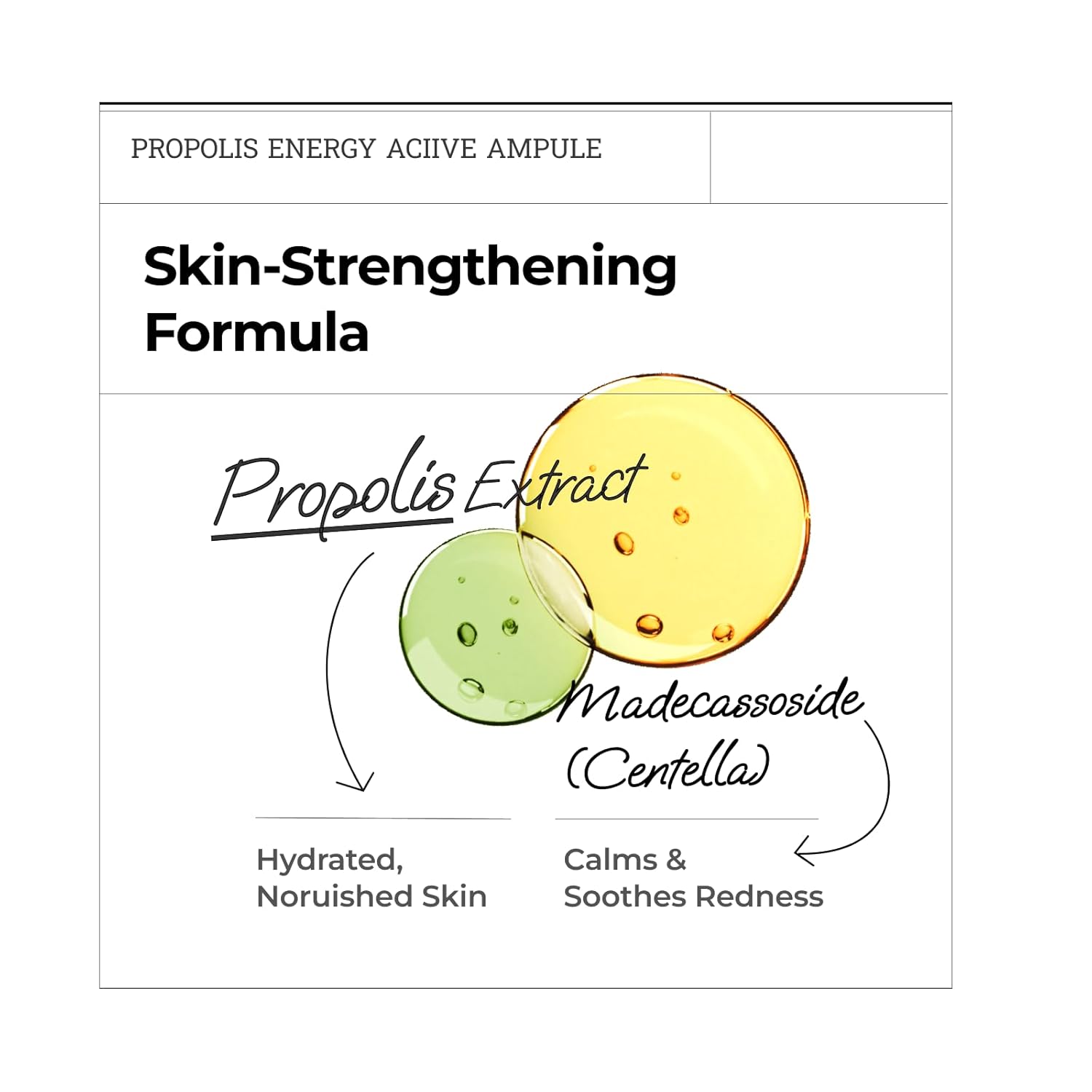 [Key Ingredients] Formualted With Propolis Extract, Effective In Soothing And Nourshing The Skin. Also, Infused With Hyaluronic Acid And Beta Glucan For Hydrating Care, And Madecassoside For Soothing Care
