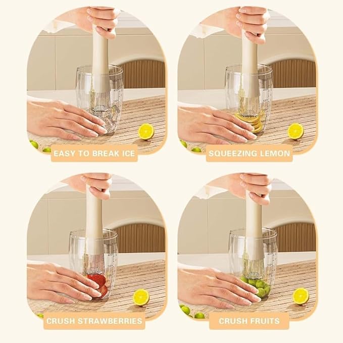 Made from durable, food-safe material, it doubles as an ice crusher, lemon press, and fruit juice squeezer, giving you multiple functions in one compact tool. Its ergonomic design provides a comfortable grip, making it easy to use for both home bartenders and professionals. Finished in an elegant beige color, it adds both style and functionality to your barware collection.