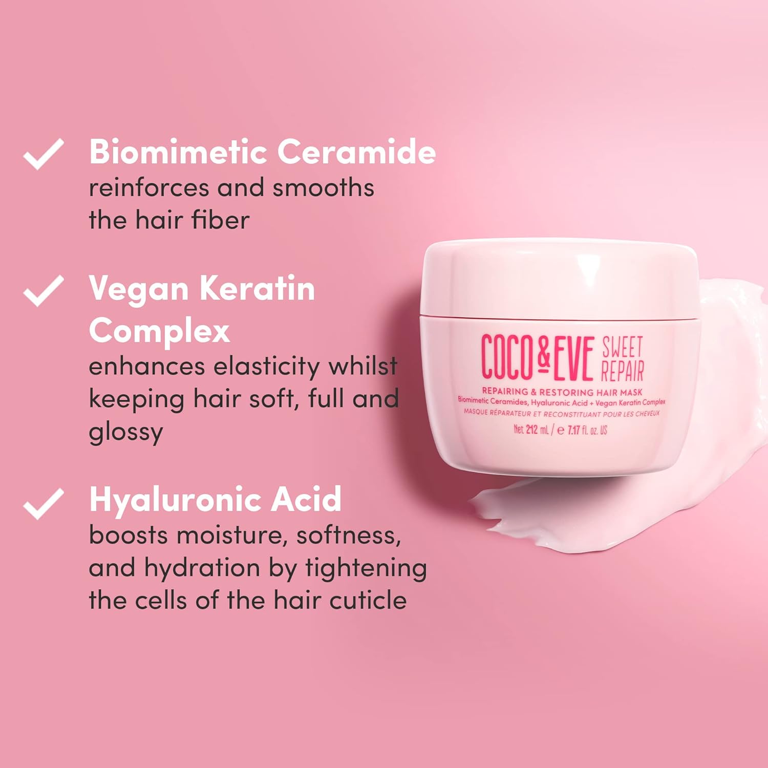 Coco & Eve Sweet Repair Repairing And Restoring Hair Mask. With Hyaluronic Acid, Vegan Keratin To Repair Dry Damaged Hair, Hydration & Shine. (212Ml)