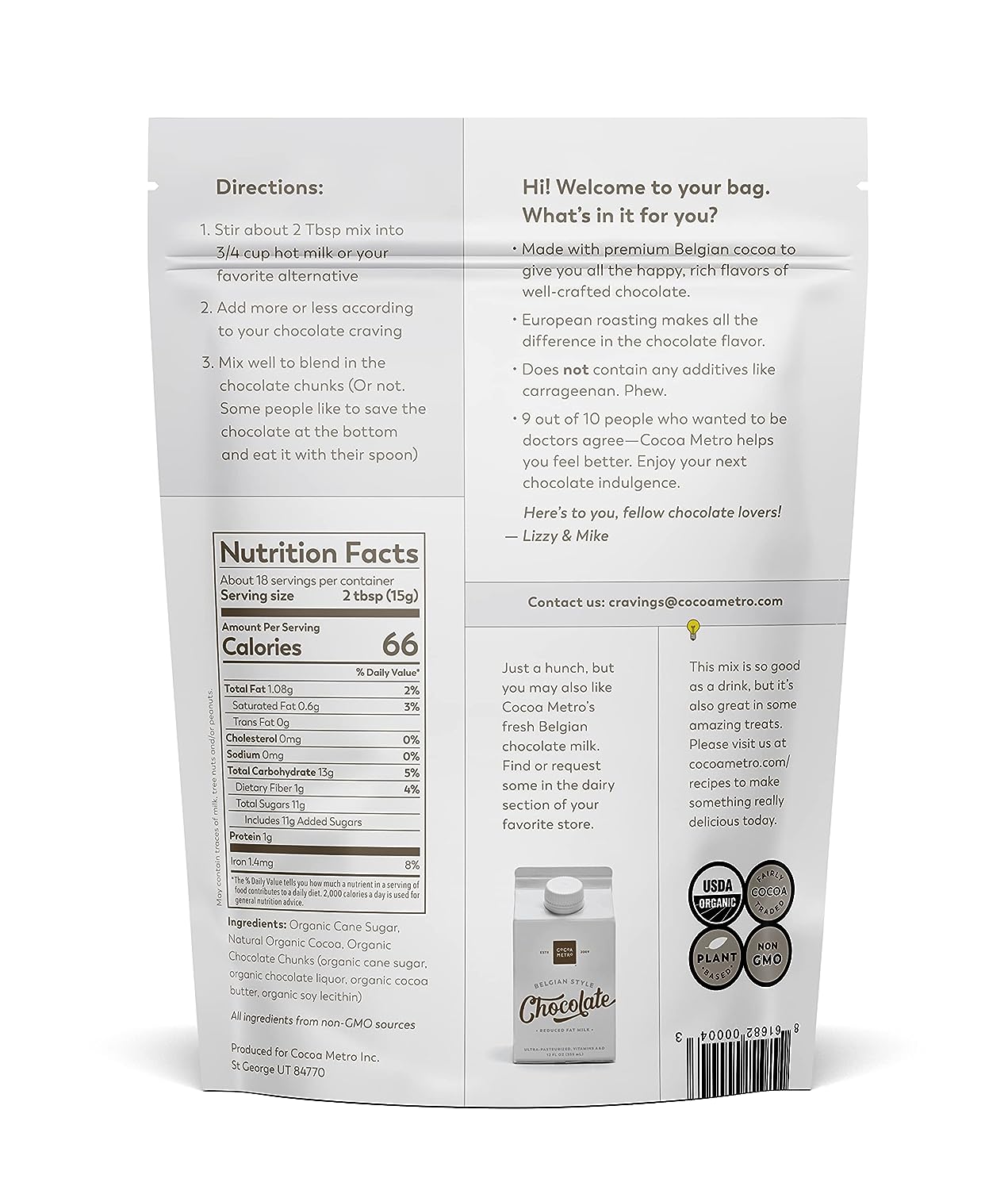 Cocoa Metro Organic Belgian Drinking Chocolate (3-Pack), organic hot chocolate with chunks of rich chocolate, European craft cacao roasting brings out fullest chocolate flavor, Non-GMO hot cocoa