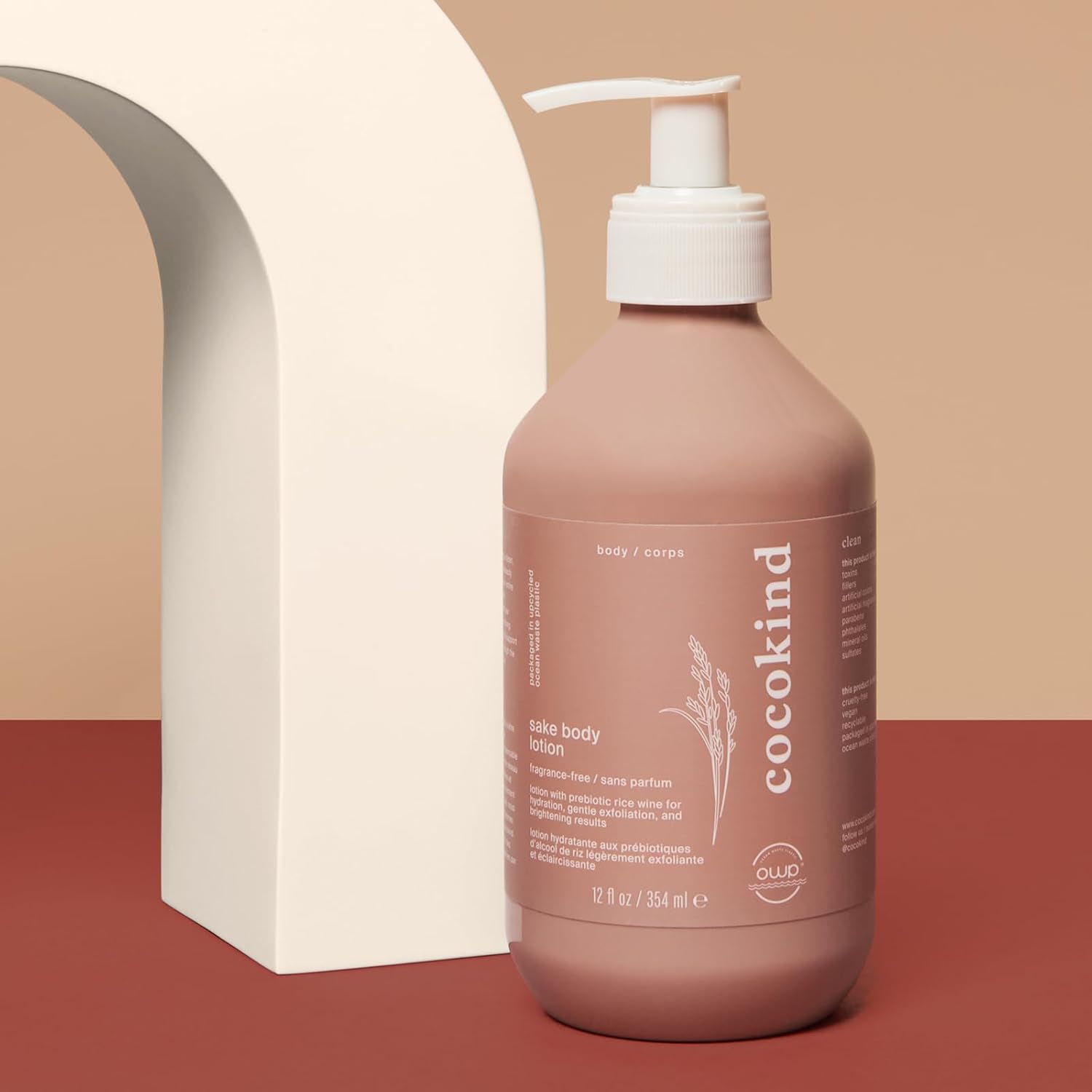 Cocokind Sake Body Lotion, Daily Lightweight Moisturizer Fragrance Free Body Lotion For Gentle Exfoliation, Support Skin Moisture Barrier, Smooth And Soft Skin, 12 Fl Oz