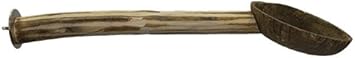 Exotic Nutrition's Coconut Cup with Perch is a natural dish that brings the feeding area away from the sides of the cage to help contain the mess. Measurements: Approximately 12" long perch, 5" diameter cup, 17" long overall FEATURES : ? NATURAL ACCESSORY - A coconut half creates a natural food dish while the long wood branch provides a sturdy perch. ? CONTAIN THE MESS - Brings the feeding area away from the sides of the cage to help contain the mess ? EASY TO INSTALL - Attaches to the side of any wired cage (hardware included) for a strong and sturdy hold for even medium sized animals. ? CLIMBING ACTIVITY - Encourages climbing behavior for sugar gliders, birds, marmosets, and other small animals. Note : Because this is a natural product, many aspects will vary including shape, color, depth of coconut, angle coconut lays, and other attributes. There is a small possibility of natural cracks on outside of coconut, but nothing severe and nothing that would make the cup unable to hold food. Care : Thoroughly inspect toys and accessories on a daily basis. Wipe product clean with a damp soft cloth as needed before returning it to the cage