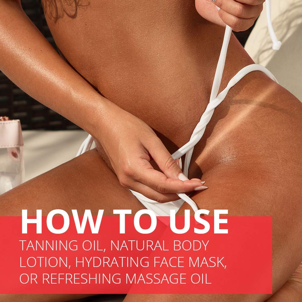 TAN IN THE SUN OR IN THE SOLARIUM This oil helps you quickly achieve a deep, long-lasting tan, and at the same time helps the skin to retain its moisture, keeping it soft, smooth, shiny and elastic. Use it at the beach or in the solarium, on your face or on your body