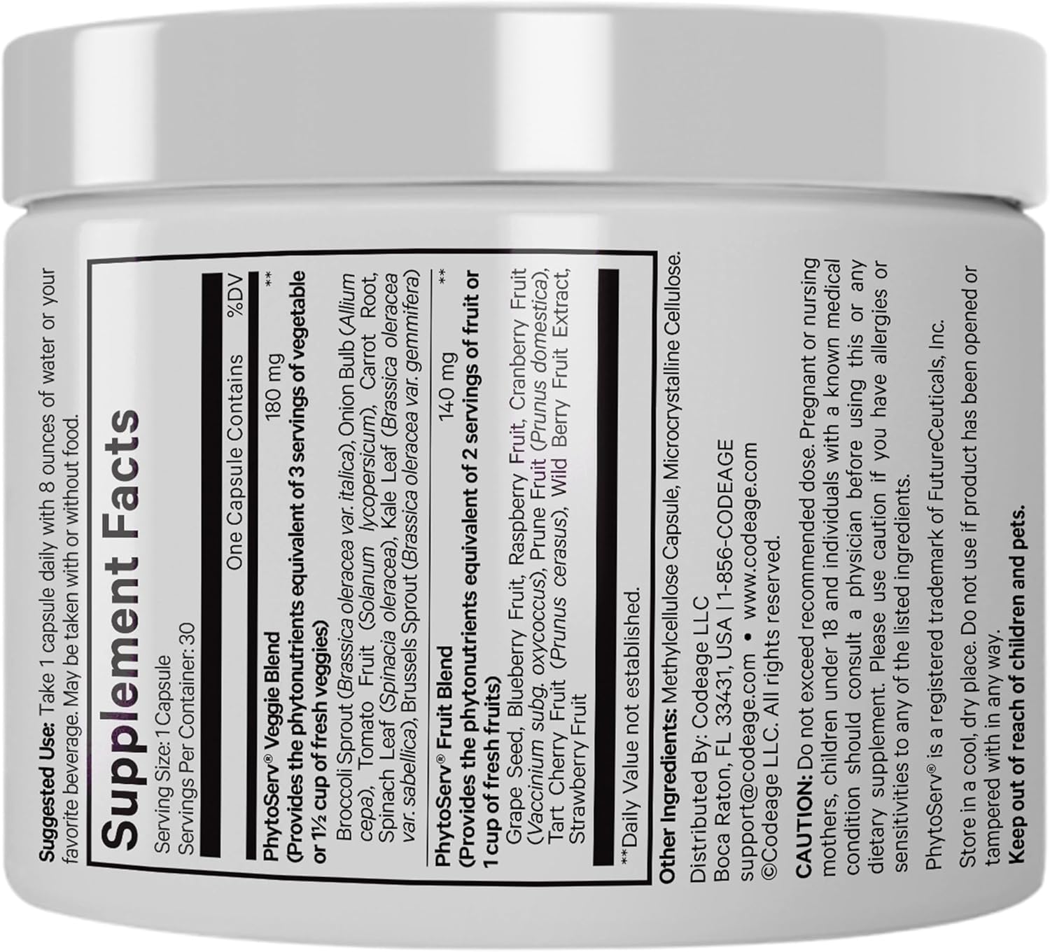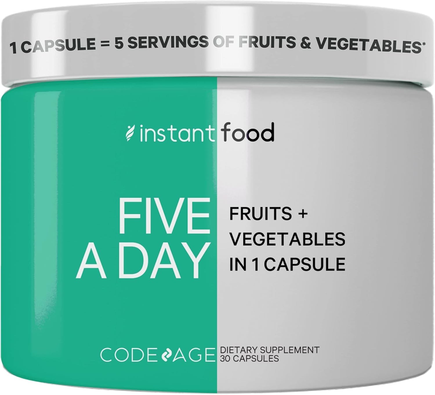 5 Portions Of Fruits & Veggies Phytonutrients In A Single Capsule: One Powder-Filled Capsule Of Codeage Instantfood 5 A Day Delivers The Equivalent Of 5 Servings Of Fruits And Vegetables Phytonutrients Each Day, In Just A Single Capsule. It Is Now Easier To Consume The Equivalent Of 5 Fruits And Vegetables, And Whole Food Vitamins