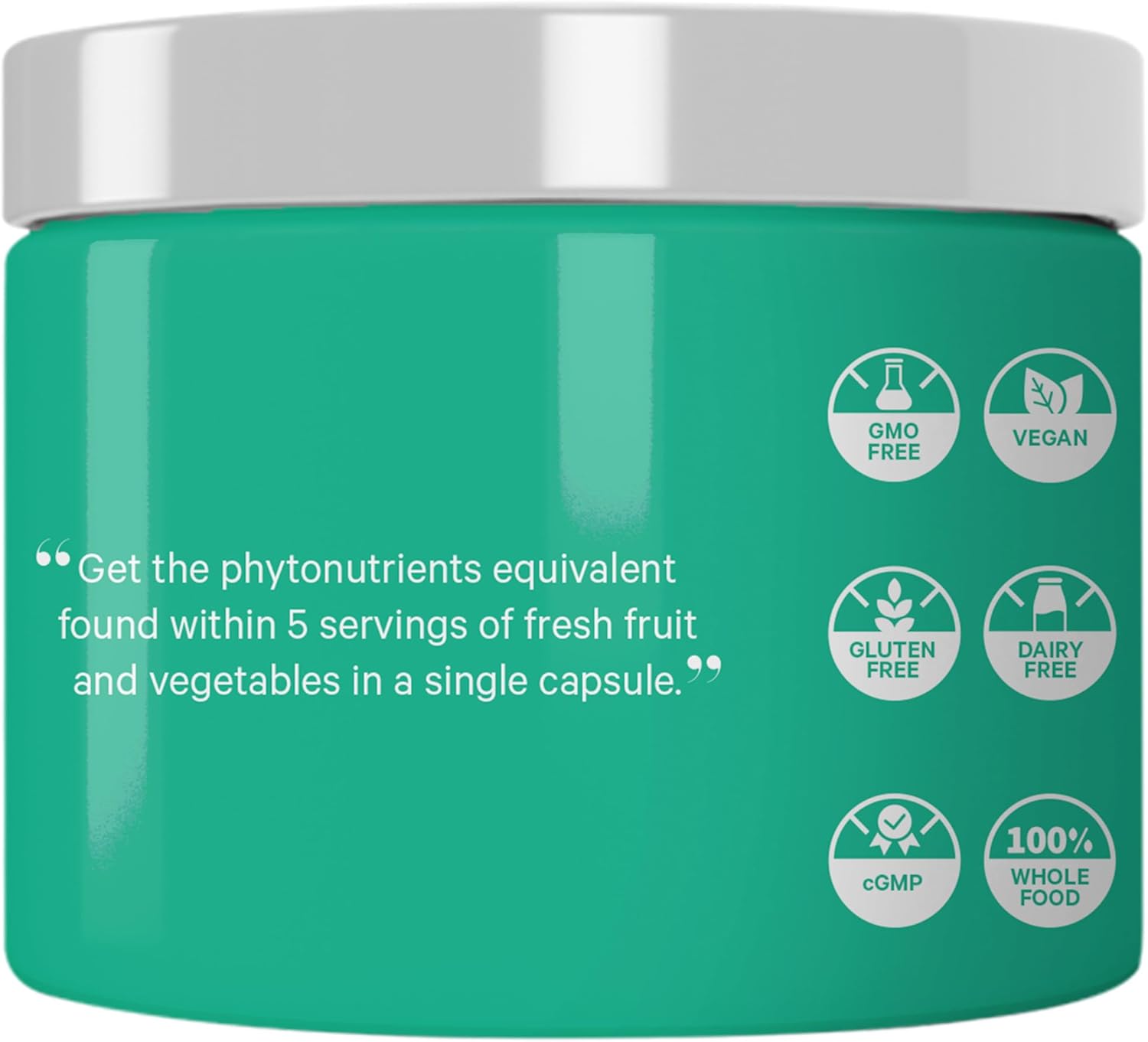 8 Non-Gmo Fruits Supplement: This Fruit And Vegetables Capsule Supplement Also Contains A Combination Of 8 Red Fruits And Berries From Strawberry To Prune And Tart Cherry Extracts. One Daily Serving Of This Superfruits Formulation Offers The Equivalent Of 2 Servings Of Fruits Phytonutrients. The Combination Of Both Fruits And Vegetables Offers The Equivalent Of 5 Fruits And Veggies Phytonutrients Serving A Day, Following The World Health Organization Recommendation
