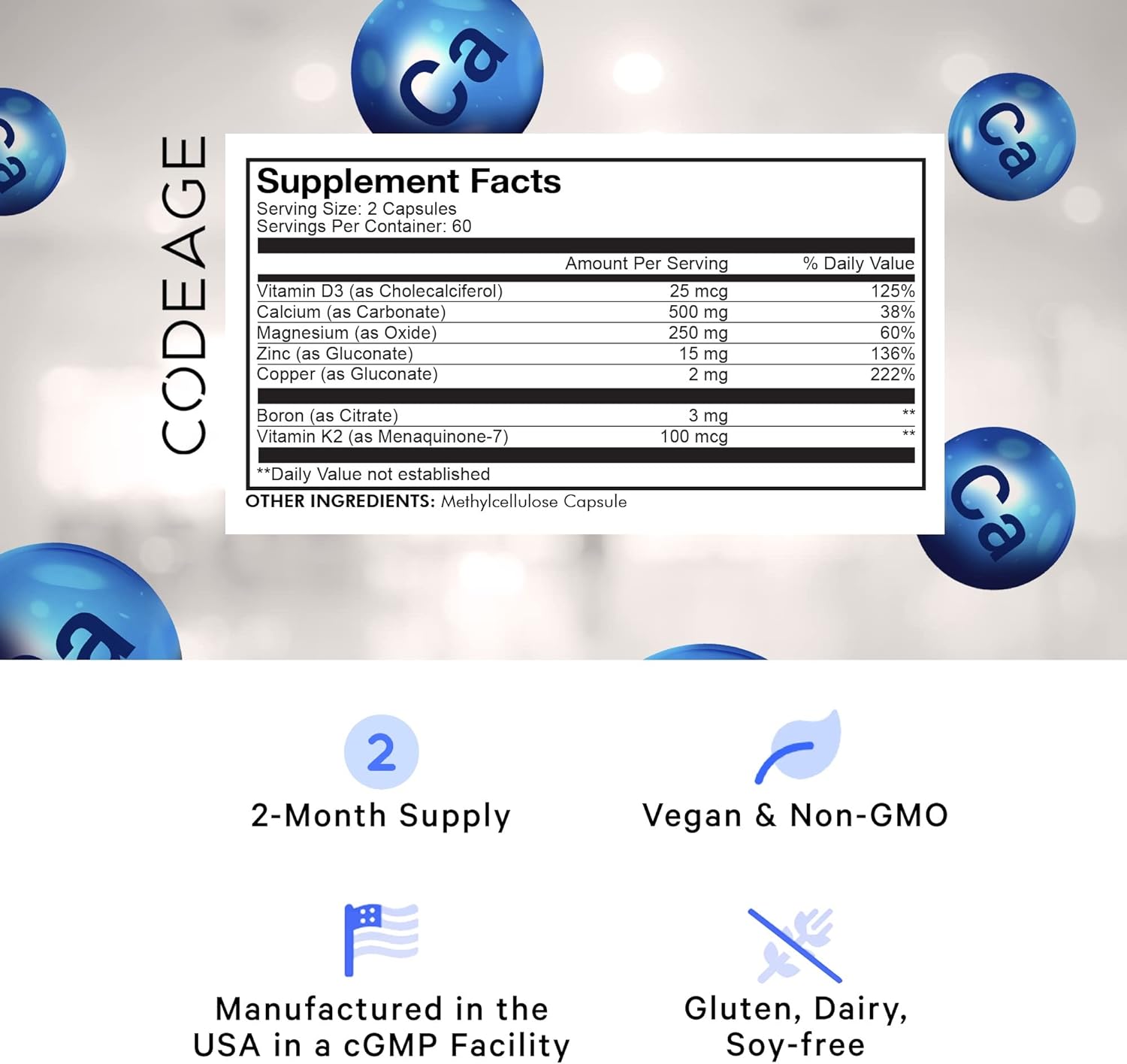 DESCRIPTION : Codeage Calcium 500mg Supplement + Magnesium Zinc Copper Boron - Elemental Calcium Vitamin D3 Vitamin K2 - Bones Teeth Immune System Support Pills - 2-Month Supply- Vegan, Non-GMO - 120 Capsules
