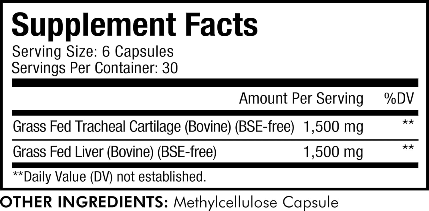 Freeze Dried & Grass Fed Beef Tracheal Cartilage & Liver: Codeage Grass-Fed And Pasture-Raised Beef Cartilage Supplement Is Freeze Dried, Desiccated And Non-Defatted. This Formula Provides 1,500Mg Of Grass Fed Tracheal Cartilage And 1500Mg Of Grass Fed Liver Bovine Per Serving