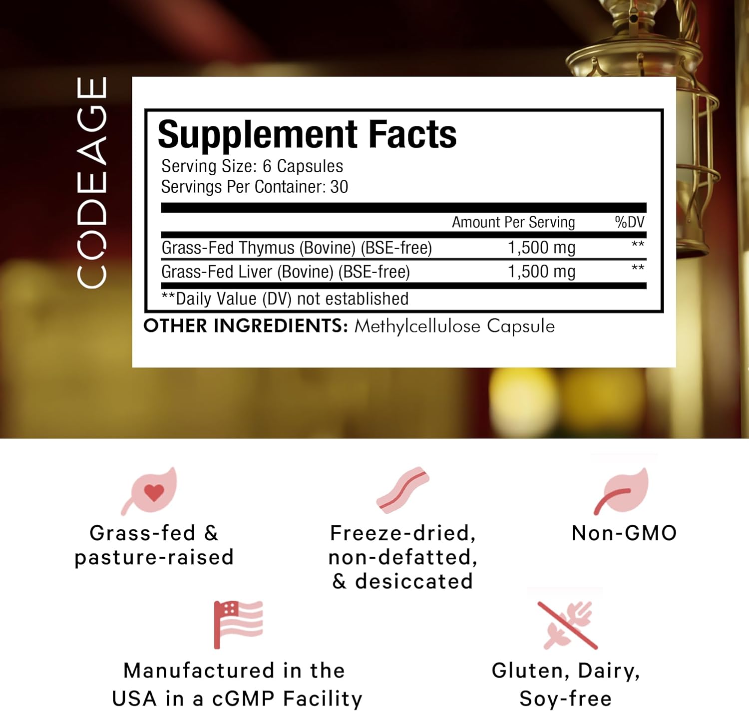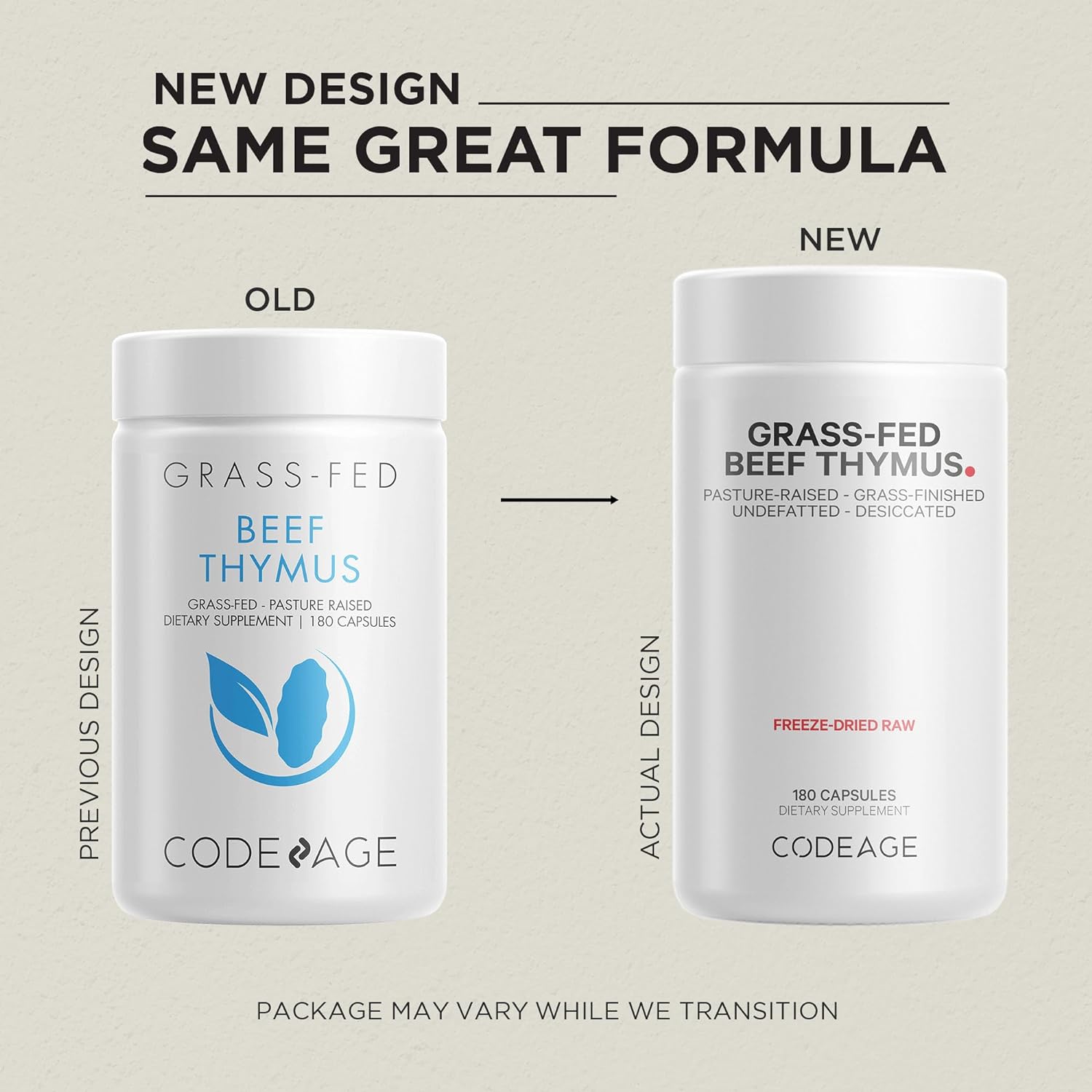 DESCRIPTION : Codeage Grass Fed Beef Thymus Supplement Superfood, Freeze Dried, Non-Defatted, Desiccated Thymus & Liver Pills, Glandulars Meat, Pasture Raised Beef Vitamins, Non-GMO, 180 Capsules