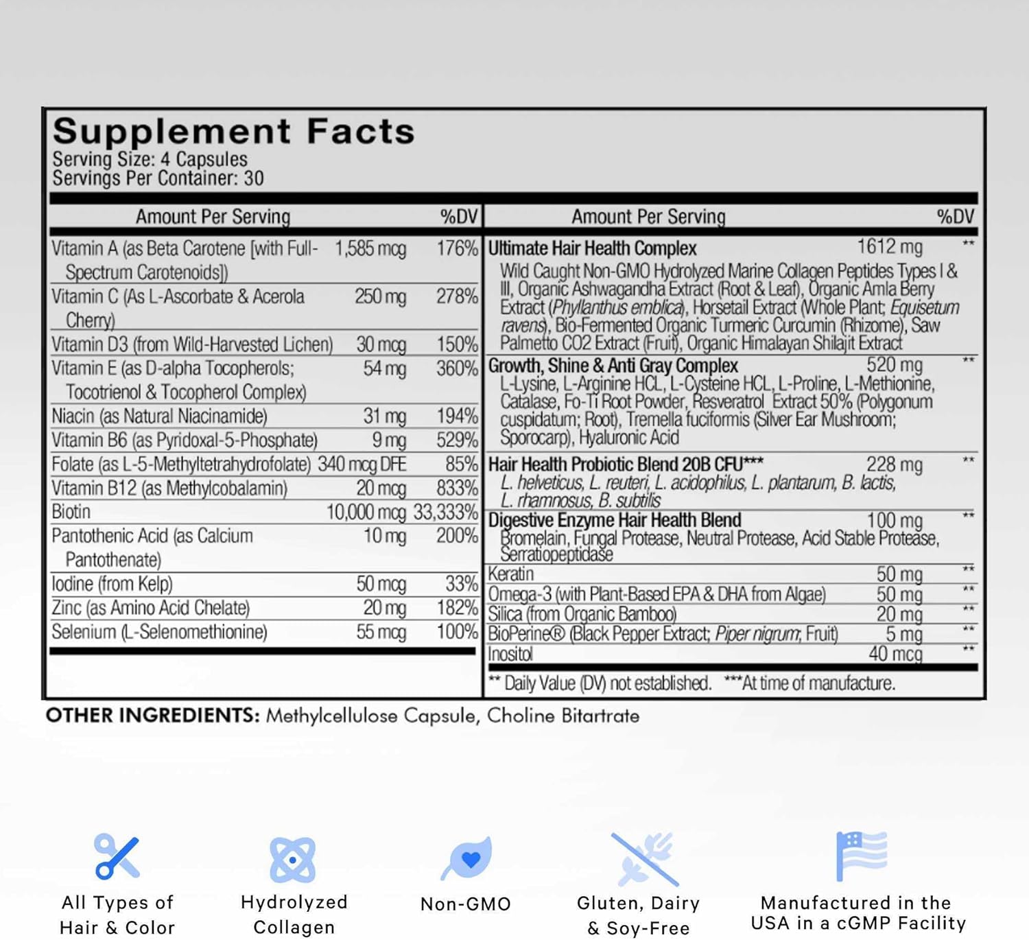 Manufactured In The Usa And Non-Gmo: Codeage Hair Vitamin Supplement Is Non-Gmo, And Is Free Of Artificial Colors, Sweeteners, Or Preservatives. This Hair Health Formula Doesn’T Contain Gluten, Soy, Shellfish, Or Binders. This Formula Is Manufactured In The Usa With Global Ingredients In A Cgmp Facility And Third-Party Tested. Each Bottle Of Codeage Hair Vitamins Comes With One Month Of Supply