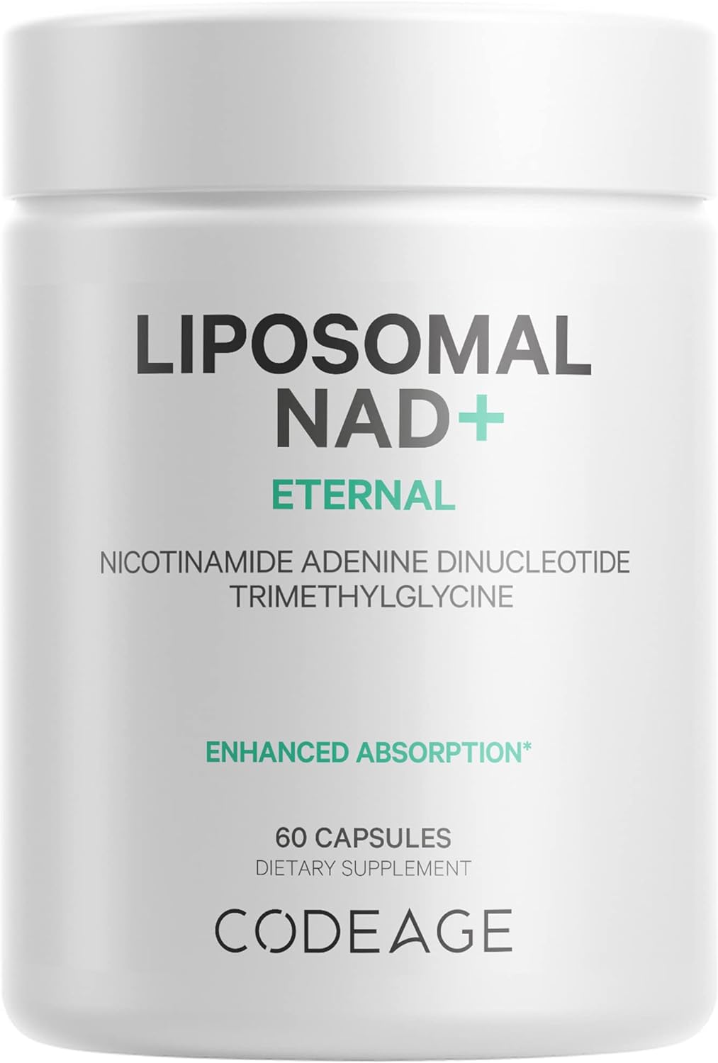 BULLET POINTS  :   1 >  Codeage Liposomal NAD+ supplement is a high-quality dietary supplement that contains 500mg of NAD+ (Nicotinamide Adenine Dinucleotide). NAD+ is a coenzyme that may help support energy production, metabolism, cells, healthy aging, and overall wellness