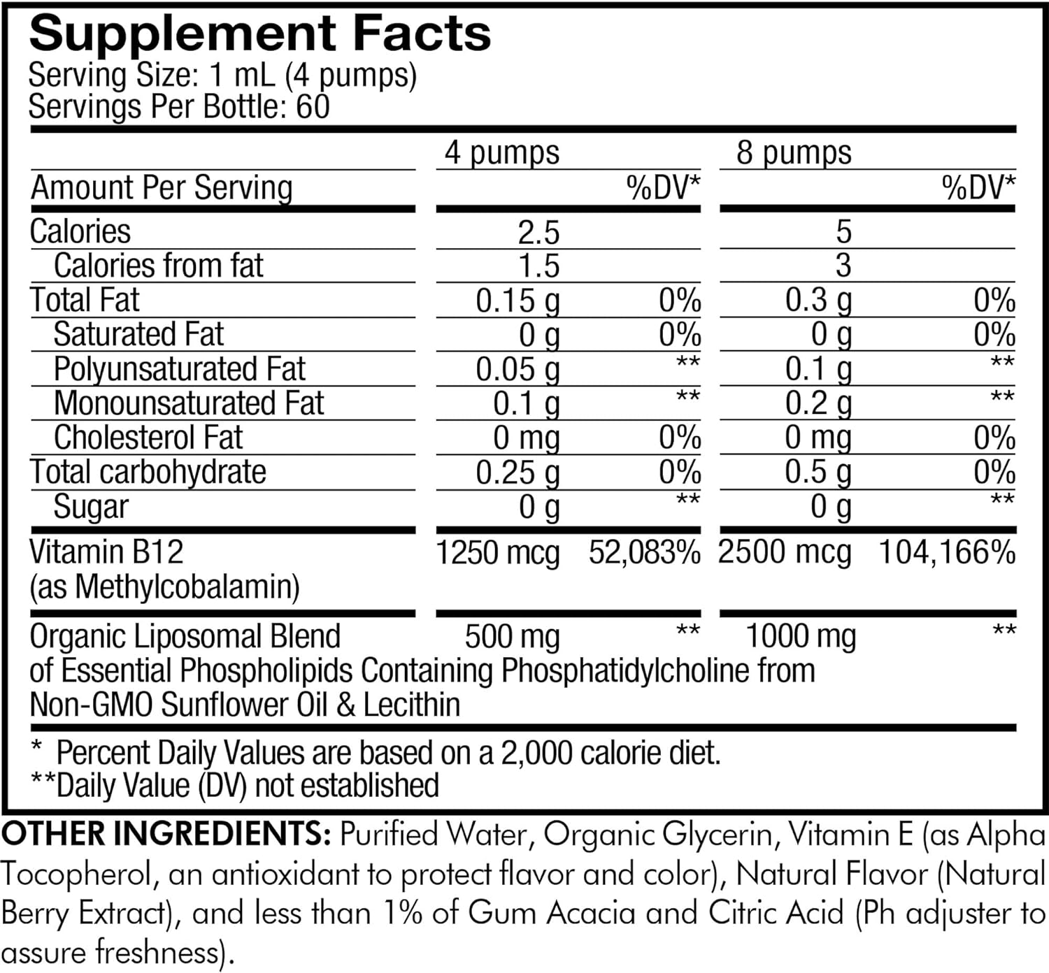 4 >Liposomal Nutrient-Delivery System & Phospholipid Complex: Each bottle of Codeage Nanofood Liposomal Vitamin B12 vegan liquid supplement offers a modern liposomal formulation using liposomes from non-GMO sunflower oil and sunflower lecithin phospholipids. Liposomes can offer a modern way to deliver nutrients