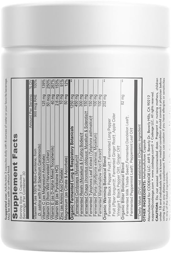 4 >Organic herbs & botanical blend: Codeage Lungs vitamins also combine a variety of organic botanicals and offer fermented herbal extracts such as peppermint leaf, tylophora, and dandelion