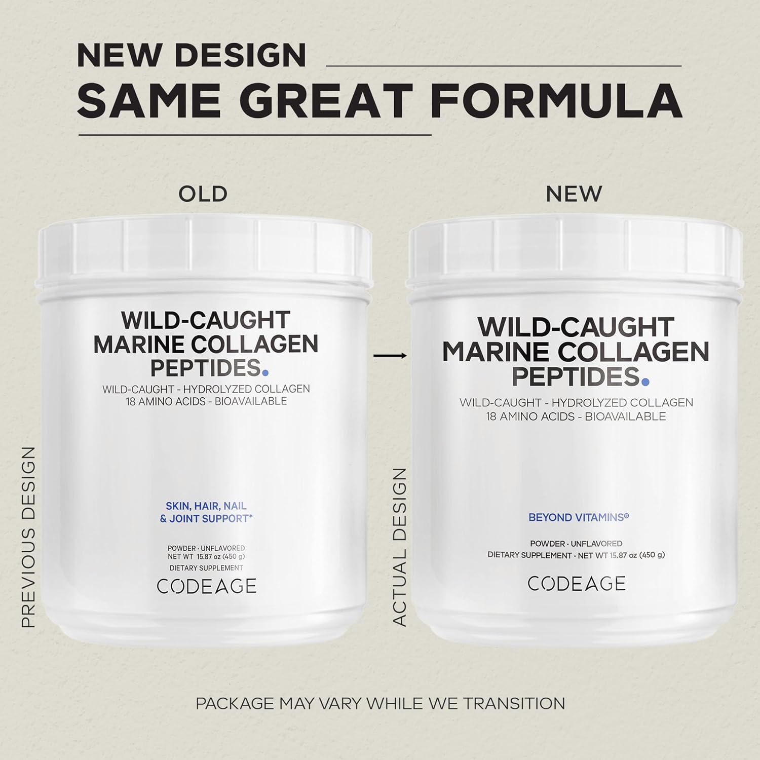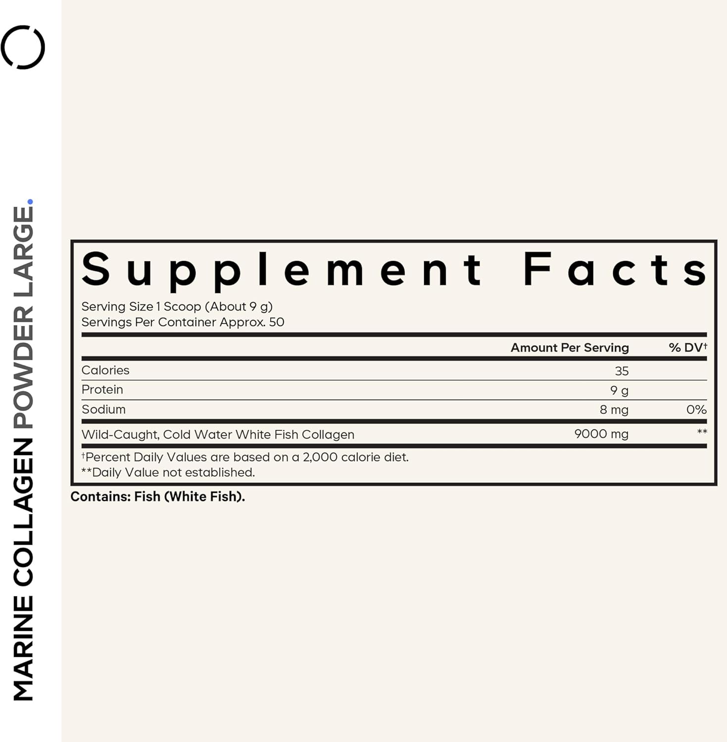 About this item Premium Marine Blend: Sustainably sourced from North American cold-water deep-ocean white fish, our hydrolyzed collagen delivers an unparalleled concentration of Type 1 & 3 collagen that can be seen as cornerstones for skin and joint support.* 18 Amino Acids: This marine collagen formula delivers 18 essential and non-essential amino acids. This pure fish collagen supplement goes beyond the basics to help provide a comprehensive boost to your health and well-being.* Uncompromised Purity: Say "no" to compromisesāour marine powder collagen formula is non-GMO, dairy-free, gluten-free, and contains zero carbs. Free from additives, preservatives, and sulfites, it's a clean addition to your daily routine and contains no shellfish. 50-Day Fortification: Each Codeage Wild-Caught Marine Collagen supplement powder container offers a generous 50-day supply designed to integrate into your busy life seamlessly. It's also incredibly versatileāmix it into beverages, protein shakes, or culinary creations. Quality You Can Trust: This wild-caught marine collagen peptides powder supplement is manufactured in the USA with global ingredients in a cGMP-certified facility for quality and purity. āŗ See more product details,Premium Marine Blend: Sustainably sourced from North American cold-water deep-ocean white fish, our hydrolyzed collagen delivers an unparalleled concentration of Type 1 & 3 collagen that can be seen as cornerstones for skin and joint support,18 Amino Acids: This marine collagen formula delivers 18 essential and non-essential amino acids. This pure fish collagen supplement goes beyond the basics to help provide a comprehensive boost to your health and well-being,Uncompromised Purity: Say "no" to compromisesāour marine powder collagen formula is non-GMO, dairy-free, gluten-free, and contains zero carbs. Free from additives, preservatives, and sulfites, it's a clean addition to your daily routine and contains no shellfish,50-Day Fortification: Each Codeage Wild-Caught Marine Collagen supplement powder container offers a generous 50-day supply designed to integrate into your busy life seamlessly. It's also incredibly versatileāmix it into beverages, protein shakes, or culinary creations,Quality You Can Trust: This wild-caught marine collagen peptides powder supplement is manufactured in the USA with global ingredients in a cGMP-certified facility for quality and purity