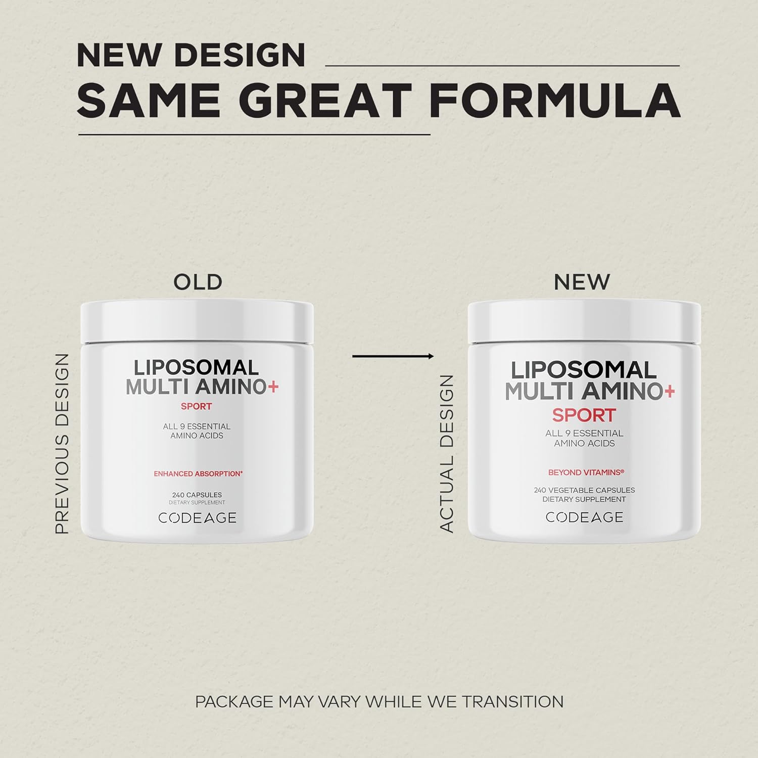 About this item Codeage Liposomal Multi Amino+ supplement is a comprehensive formula that includes all 9 essential amino acids, building blocks of protein. These amino acids cannot be produced by the body and must be obtained through diet or supplementation. This BCAA (branched-chain amino acid) and EAA (essential amino acid) supplement features a liposomal delivery made with a phospholipid complex utilizing non-GMO sunflower oil for added purity. This EAA supplement formula offers L-Leucine, L-Lysine HCl, L-Isoleucine, L-Valine, L-Threonine, L-Phenylalanine, L-Methionine, L-Histidine, L-Cystine, L-Tyrosine in their free-form as well as L-Tryptophan. This BCAA supplement is vegan, non-GMO, soy-free, dairy-free, and gluten-free, making it suitable for those with dietary restrictions or sensitivities. Each Codeage Liposomal Multi Amino+ BCAA supplement bottle contains 30 servings, providing a month's supply of amino acids. This amino acid supplement is suitable for adults of all ages. Codeage Liposomal Multi Amino capsule supplement is manufactured in the USA with global ingredients in a cGMP-certified facility for quality and purity. › See more product details,Codeage Liposomal Multi Amino+ supplement is a comprehensive formula that includes all 9 essential amino acids, building blocks of protein. These amino acids cannot be produced by the body and must be obtained through diet or supplementation,This BCAA (branched-chain amino acid) and EAA (essential amino acid) supplement features a liposomal delivery made with a phospholipid complex utilizing non-GMO sunflower oil for added purity. This EAA supplement formula offers L-Leucine, L-Lysine HCl, L-Isoleucine, L-Valine, L-Threonine, L-Phenylalanine, L-Methionine, L-Histidine, L-Cystine, L-Tyrosine in their free-form as well as L-Tryptophan,This BCAA supplement is vegan, non-GMO, soy-free, dairy-free, and gluten-free, making it suitable for those with dietary restrictions or sensitivities,Each Codeage Liposomal Multi Amino+ BCAA supplement bottle contains 30 servings, providing a month's supply of amino acids. This amino acid supplement is suitable for adults of all ages,Codeage Liposomal Multi Amino capsule supplement is manufactured in the USA with global ingredients in a cGMP-certified facility for quality and purity